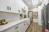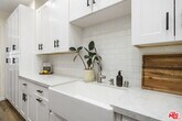 Top-floor, rear-corner home in the heart of Brentwood, quiet, bright, and beautifully updated. An open living/dining area spills onto a private balcony, perfect for morning coffee or alfresco dinners, while a separate office nook makes working from home easy. The remodeled kitchen is a standout with a skylight, custom cabinetry, quartz countertops, subway-tile backsplash, apron/farmhouse sink, and stainless-steel appliances. The serene primary bedroom features a spa-like bath with a soaking tub and a separate shower. The second bedroom is well-sized; the second, remodeled bath sits just outside in a private hallway for added privacy. Wide-plank wood-style floors, recessed lighting, in-unit stackable washer/dryer, and central air conditioning complete the interior. Two-car tandem parking plus extra storage. Well-maintained building with a newly refreshed heated pool & spa, sauna, BBQ/pool area, rec room, elevator, and EQ insurance. Stellar location moments to San Vicente & Wilshire shops, dining, and the Brentwood Farmers Market. MLS# 25599155