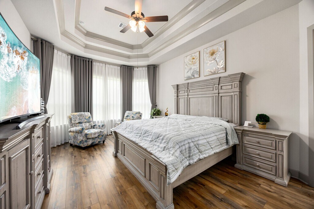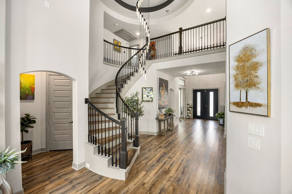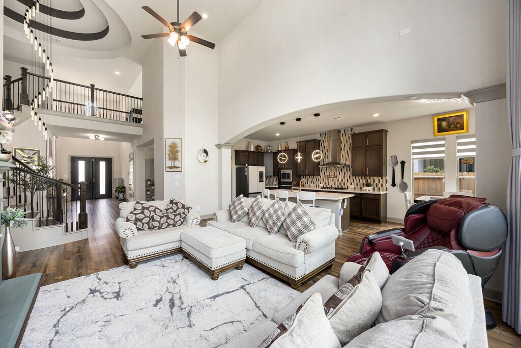 MOVE-IN READY beautiful Westin Homes,2-story features 5 bedrooms,4.5 baths,& a brick-and-stone elevation with 4 sides brick. Step inside to a grand double-door entry,curved staircase,soaring tray ceilings,and wood flooring throughout. A private office sits to the right,with a formal dining room and built-in cabinetry to the left. The open living area offers a cozy fireplace,floor-to-ceiling windows,and a chef’s kitchen with stone backsplash,stainless steel appliances,abundant cabinetry,and a large island. The first-floor primary suite includes a sitting area,spa-like bath,and walk-in closet. Upstairs features a game room plus a media room—ideal for entertaining or relaxing. Backyard offers no rear neighbors,serene views,& wrought iron fencing. Community amenities include lakes,parks,gym,trails,and quick access to I-45,TX-105,FM 1314,HEB,and much more. Landlord has moved out—photos may show furniture no longer present. MLS# 61632079