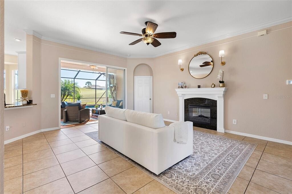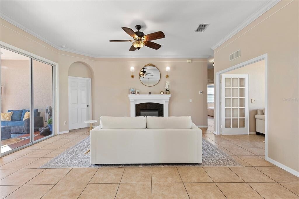 This home is available for SHORT TERM RENTAL Welcome to the Exclusive 55+ Gated Golf Community of STONECREST,a place where every day feels like a vacation and the possibilities for fun and relaxation are endless! This vibrant community,located just next door to The Villages,Florida,offers a lifestyle like no other. Dive into the good life with access to four sparkling pools,thrilling pickleball matches,a bustling softball field,and over 80 exciting clubs to join. Here,you’ll find everything you need to stay active,connect with friends,and truly enjoy the best years of your life! This exceptional KINGSLEY model,built by Oriole,has been lovingly enhanced and is ready for you to move in and start living your dream. With a NEW ROOF and HVAC SYSTEM IN 2020,you can enjoy peace of mind knowing the big upgrades have been taken care of. The resurfaced pool and freshly painted pool deck create a private backyard oasis,perfect for soaking up the Florida sunshine or hosting unforgettable get togethers. Inside,new flooring in the primary and second bedrooms adds a fresh,modern touch. The primary suite is your personal sanctuary,featuring a charming bay window with seating and storage and an enormous walk-in closet with custom built-ins. The den,with its elegant French doors,offers flexibility as a cozy retreat or home office. Throughout the home,soaring 10-foot ceilings with (crown molding in the Living and Dining room) make every room feel bright,and airy. The heart of the home is the kitchen,a chef’s delight with GRANITE COUNTERTOPS,beautiful 42 INCH CABINETS,a convenient coffee station,and ample storage for all your needs. Step outside through sliding glass doors to the covered lanai,where the SOLAR HEATED,SPARKLING POOL and south facing backyard invite you to relax,unwind,and enjoy the Florida lifestyle. The electric fireplace in the Living room adds charm and coziness to the home. But it doesn’t stop there! The two car garage includes built-in storage,a WHOLE HOME WATER FILTRATION SYSTEM,AND ELECTRIC SCREEN DOOR. And with lawn maintenance covered in the monthly HOA fee,you can spend less time worrying about chores and more time enjoying everything Stonecrest has to offer. From shopping and dining to healthcare and easy access to I-75 and the Turnpike,this home combines convenience,comfort,and a sense of community. MLS# OM713304