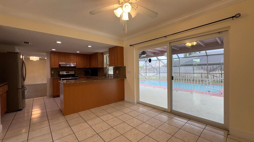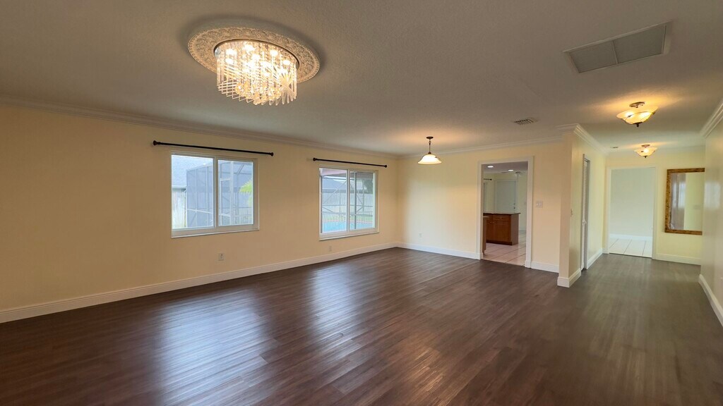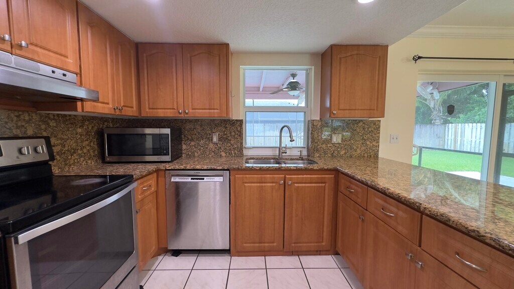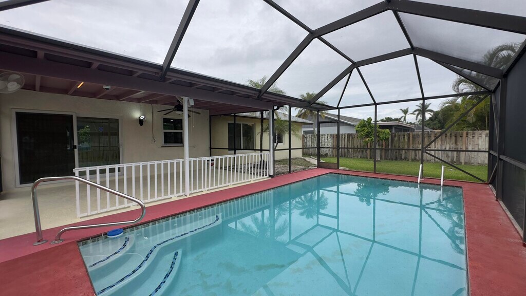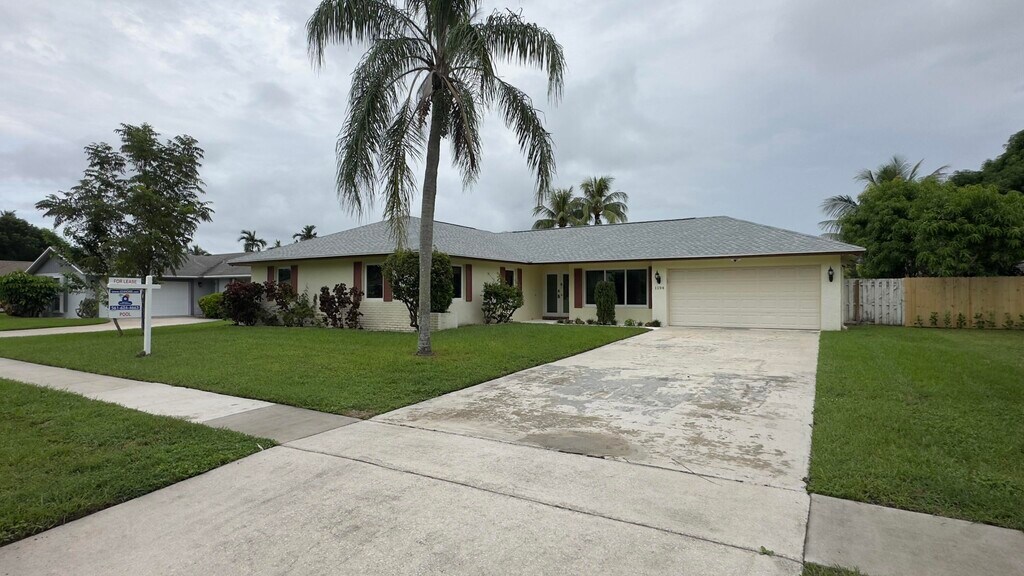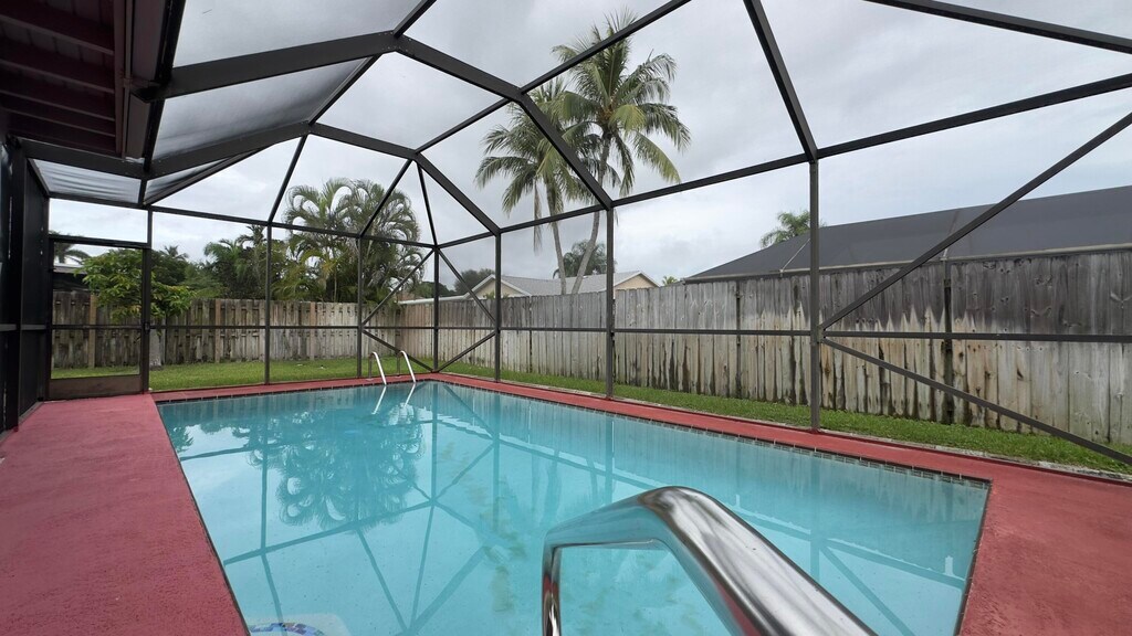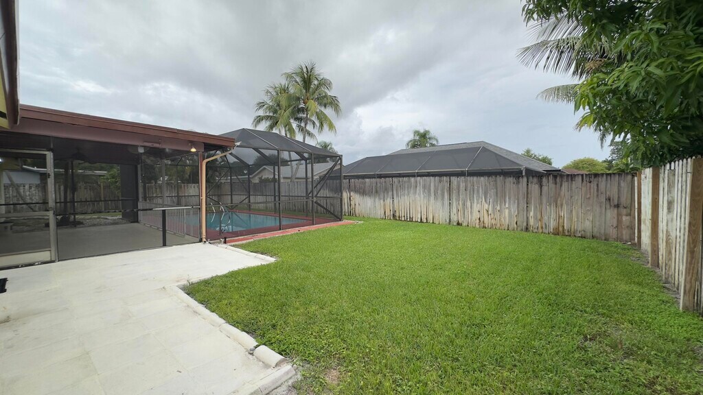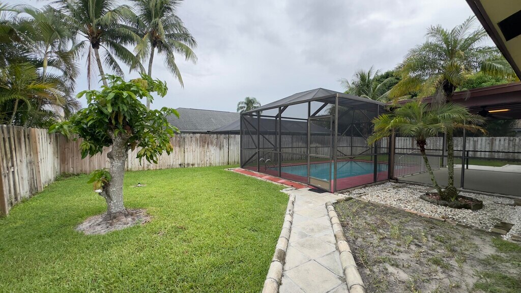 WELLINGTON SINGLE FAMILY THREE BEDROOM TWO BATH POOL HOME WITH 2108 SQ FT AND TWO CAR GARAGE. WOOD AND TILE FLOORING THROUGHOUT. KITCHEN OFFERS PLENTY OF CABINETRY, GRANITE COUNTERTOPS, AND STAINLESS APPLIANCES. UPDATED BATH WITH WALK-IN SHOWER - UPDATED GUEST BATH WITH SHOWER / TUB COMBINATION. SLIDERS OUT TO YOUR SCREENED IN PATIO OPENING TO THE POOL WITH LANAI AND LARGE FENCED IN YARD. FULL-SIZE WASHER / DRYER. POOL AND LAWN CARE INCLUDED. PET FRIENDLY!