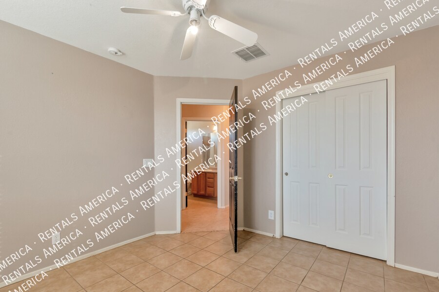 This amazing 4 bedroom home is ready for your family now. Upon entering, you'll notice the high ceilings and low-maintenance tile floors with plenty of natural sunlight. The kitchen has tons of cabinet and counter space with island and opens to the dining area. Bonus room on bottom floor can be used as a library/study/office/art room, etc. Bedrooms are good-sized and master bedroom also has a bonus space that can be used as a private office and private balcony. Back yard comes with full covered patio with fan, large grass area, and flagstone extension. Home is super low maintenance and is available today! One-Time Admin Fee: $300. Monthly Administrative Fee: 1%. Refundable Pet Deposit: $300/Pet, if applicable. Resident Benefits Package: $39/month. Helping Heroes Discount Available! Garage Pets Allowed