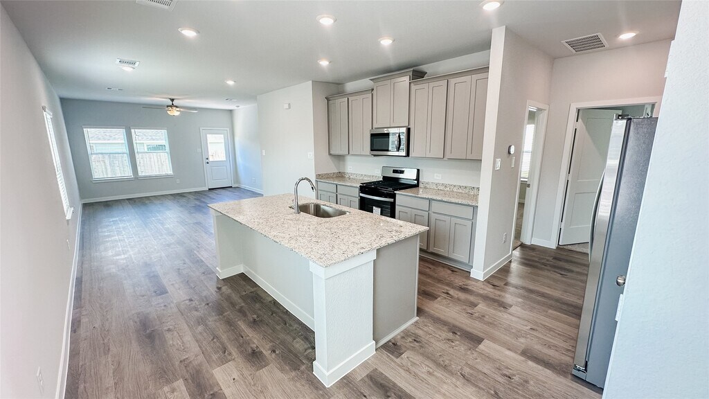 BRAND NEW! 1,388 square feet of thoughtfully designed living space in this 3 bedroom,2 bath home. The kitchen stands out with 42" cabinets,stainless steel appliances,and a Whirlpool 5-burner gas range. The primary suite offers a spa-like retreat with a stunning 5' tiled walk-in shower. Stay comfortable year-round with ceiling fans in both the primary bedroom and great room,and take advantage of added conveniences such as a tankless water heater,garage door opener,and blinds throughout. MLS# 66842424