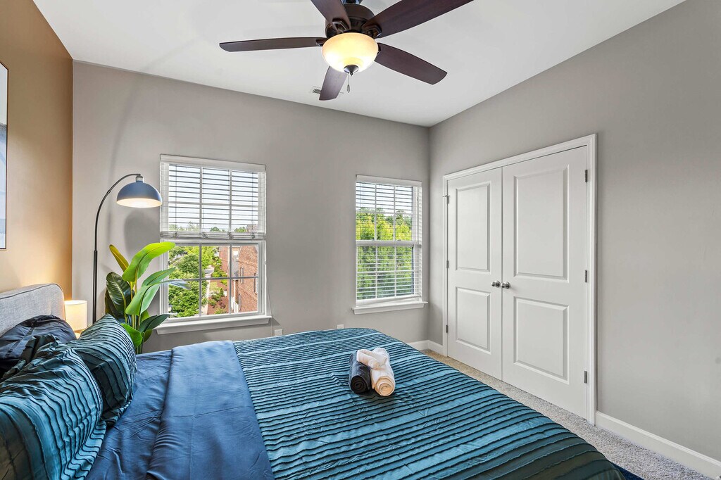Stay in style in the eclectic city of Charlotte, home to the second largest banking center in the USA. This classy 1696 sq. ft. townhouse features three bedrooms and two and a half bathrooms, with one king-size bed and four full beds for your comfort. Enjoy lightning-fast Wi-Fi, a convertible sleeper couch, a fully equipped kitchen, and other luxury amenities, specially designed for your longer-length stays. Step out to a lively neighborhood, just minutes from Uptown Charlotte, and steps away from restaurants, cafés, bars, and shops. Begin your day with a perfectly brewed cup of tea or instant coffee, decaf or regular, prepared just the way you like it from the convenient coffee station in your upscale kitchen. Whether you're here for business or leisure, this space is designed to provide the perfect balance of comfort and convenience. With vibrant restaurants just minutes away, you might find yourself exploring the culinary scene in Charlotte each night. After a long day, it’s reassuring to know that your well-equipped kitchen and elegant dining table are ready to provide a five-star dining experience right at home. Whether you choose to venture out or stay in, this space serves as the perfect home base for work, relaxation, and entertainment. Step inside and discover an inviting open-concept living area, elegantly furnished to provide a blend of relaxation and functionality. Large windows flood the space with natural light, while modern décor and high-end finishes create a sophisticated yet comfortable atmosphere. We welcome up to two pets per reservation, each weighing under 35 lbs, with a fee of $49 per pet for stays of 1–6 nights. Additional charges apply for longer stays. For pets over 35 lbs, a one-time large pet fee applies to help cover the additional cleaning and care required. Bringing undisclosed pets into the unit may result in a minimum $500 fine and cancellation of your stay without refund. Early check-in and late checkout are based on availability, with fees applicable. Optional mid-stay cleaning is available for extended stays, including new linens, surface cleaning, and trash removal. Situated in a vibrant neighborhood, this property places you within minutes of top attractions, dining, and nightlife. Enjoy easy access to the NASCAR Hall of Fame, Discovery Place Science, Carowinds Amusement Park, Billy Graham Library, U.S. National Whitewater Center, Spectrum Center, SouthPark Mall, Bank of America Stadium, Camp North End, NoDa (North Davidson Arts District), Plaza Midwood, and Freedom Park. Private garage parking and driveway accommodate multiple cars, and public transit and ride shares are readily available for quick access to Uber, Lyft, and local transit. Quiet hours are strictly enforced from 8:00 PM to 8:00 AM. During this time, guests must keep noise to a minimum, including avoiding loud conversations, TV, music, or activity that may disturb neighbors. Bluetooth speakers, sound systems, and amplified music are prohibited at all times throughout the unit, hallways, and outdoor areas. This property is equipped with noise monitoring devices and exterior security cameras. If noise levels exceed 80 decibels for more than 10 consecutive minutes, guests will be fined $2,500, removed from the property immediately, and their reservation will be canceled without refund. Smoking is strictly prohibited anywhere on the premises, including inside the unit, on balconies or patios, and in shared or public spaces. The unit is equipped with active smoke detectors. If a detector is tampered with, disabled, or triggered due to smoking, guests will be fined $2,500 and removed from the property immediately without refund. Unauthorized guests will result in a $500 fine per person, immediate removal from the property, and cancellation of the reservation without refund. All guests must complete our identity verification process prior to check-in. The primary guest must be at least 21 years old; guests aged 18–20 may stay with prior approval and a one-time $35 fee. Verification includes uploading a valid photo ID and a matching selfie. Failure to complete this process will result in cancellation of your reservation without refund. All units are equipped with a smart lock or lockbox system. Access details will be shared via email or text message 24 hours prior to check-in, but only after the pre-check-in form and identity verification are completed. Some units may require downloading a mobile app for Bluetooth access. Guests are expected to follow the instructions provided in the Guest Portal specific to their unit. The apartment is perfect for business travelers with high-speed Wi-Fi, a quiet workspace, and proximity to business districts. It features a dedicated workstation with a standing desk, ideal for remote work.