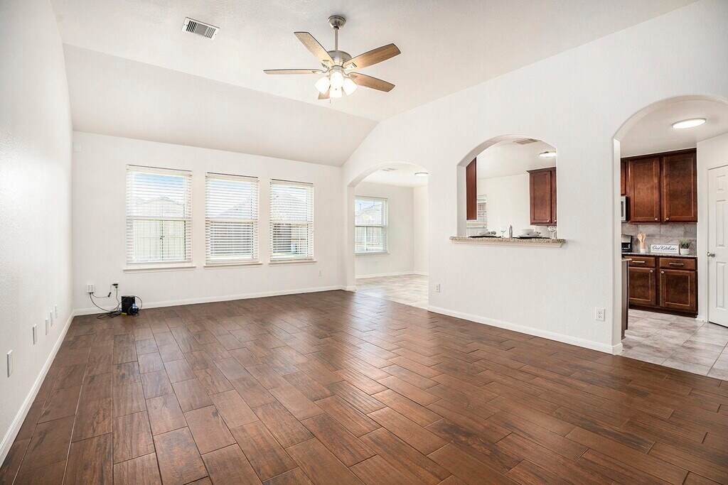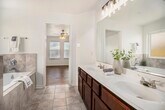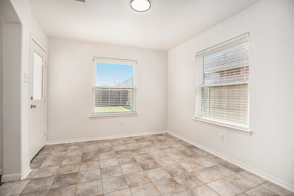 This charming single-story home in Mustang Crossing is the perfect place to unwind after a long day. Recently refreshed with new paint,modern flooring,and updated light fixtures,this 3-bedroom,2-bathroom home is ready for you to enjoy. The kitchen is a chef's delight,offering plenty of granite countertops and cabinet space,along with a comfortable breakfast area. The smart split-bedroom floorplan provides a private primary suite with its own bathroom,featuring dual sinks,a separate shower,and a soaking tub. The two secondary bedrooms are located on the other side of the home,sharing a full guest bathroom. Step outside to the fully fenced-in backyard and relax on the patio,the ideal spot for outdoor gatherings. A new water heater adds to the list of recent updates,ensuring this home is both beautiful and efficient. The property also includes a two-car garage and is conveniently located near walking trails and a park. MLS# 91989768