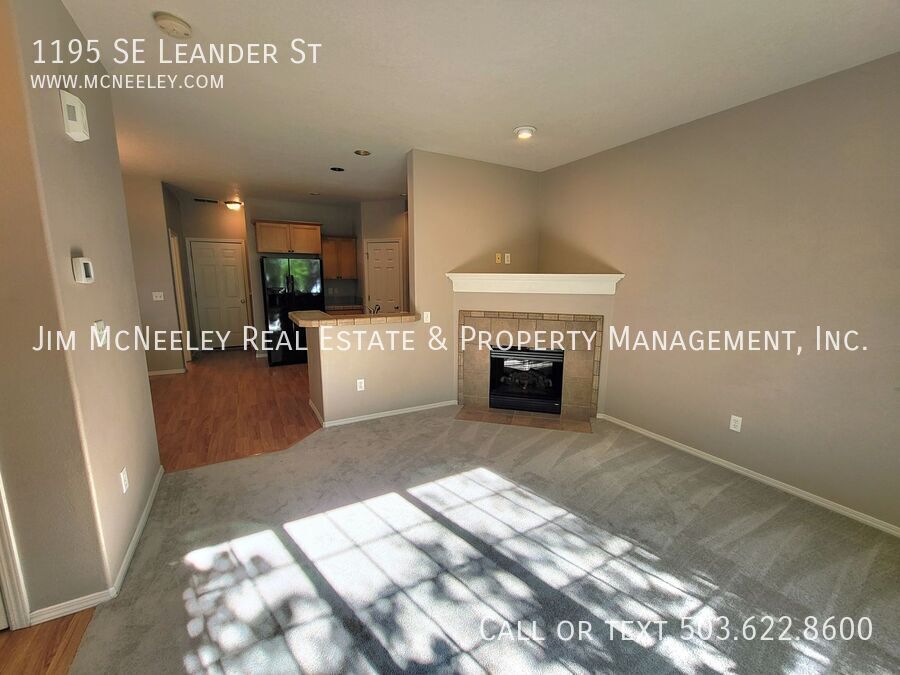 This tranquil end unit Town Home offers private gated patio and covered front porch. Entry features laminated wood floors which opens to the great room with large windows and cozy gas fireplace. The gourmet kitchen offers maple cabinetry, tile counters, gas appliances, built-in microwave, walk-in pantry, and laminate floors that extend into the adjacent dining area. The main floor includes half bath and 2-car garage. Upper level has loft/office space and laundry room with washer & dryer. The primary ensuite has walk-in closet, double sinks, walk-in shower, and water closet. The upstairs also includes 2 additional Bedrooms (1 w/vaulted ceiling & walk-in closet) share hall BA w/shower/tub. HOA includes pool, hot tub, parks, rec center, exterior maintenance & internet. Awesome location in the Arbor Roses Community moments to walking trails, Shute Park, Library, MAX, shopping & dining. Directions: TV HWY south on 11th, East on Leander ST. *****To Apply for This Property (Use links on listing on our company website - mcneeley . com. They may not appear on third-party sites) **** - Our Application Process and Criteria (Please review before applying):