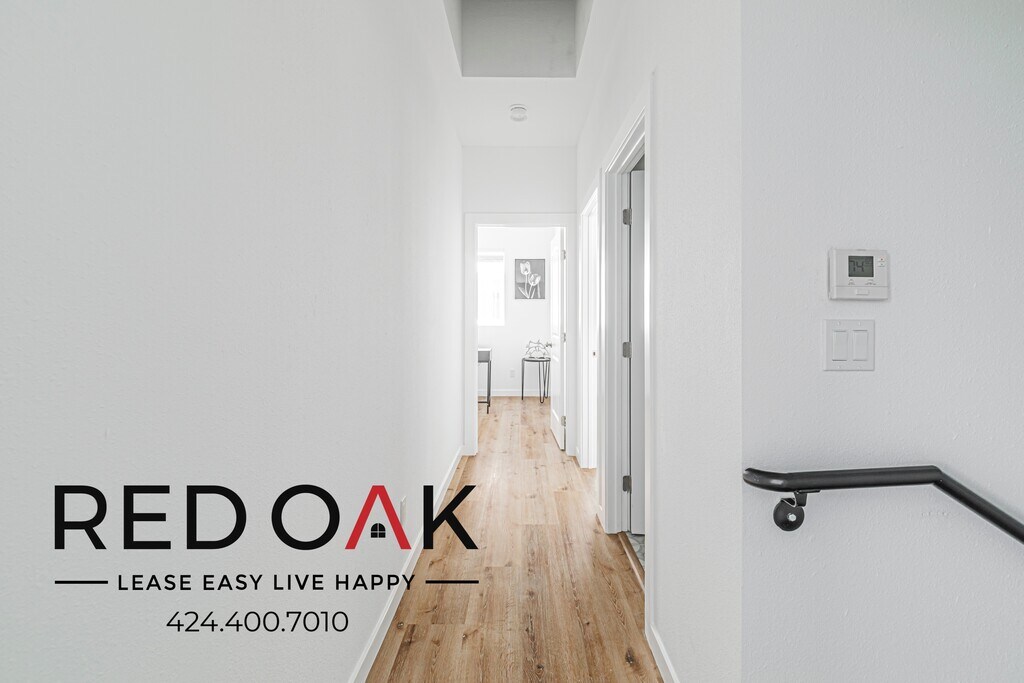 Stunning Four Bedroom with Three Levels, Private Balcony, Designer Finishes, Stainless Steel Appliances, In-Unit Laundry, and Two Parking Spaces Included ~ In Lovely North Hollywood! Features: ~ Open & Airy: Hardwood-style floors, enhanced by recessed lighting and large windows. ~ Private Balcony: Relax or entertain in your outdoor space. ~ Climate Control: Central heat and A/C keep you comfortable. ~ Kitchen: Hardwood cabinets, granite countertops, stainless steel appliances, ~ Bedrooms: Large windows and ample closets. ~ Bathrooms: Well-lit mirror, hardwood vanity, and soaking tub/shower in each full bath. ~ Utilities: Trash services included. ~ In-Unit Laundry: Washer and dryer for personal use. ~ Parking: Two spaces for your vehicles are included. ~ ESA-Friendly: Emotional support animals welcome. ~ Location: Minutes from NoHo West, Trader Joe's, 24 Hour Fitness, Boba Time, Brickyard Pub, The Federal, In-N-Out, and Starbucks. Easy access to the 101, 170, and 405 freeways, as well as the Metro Orange Line. ~ Don't miss out on the opportunity! Available for an immediate move-in. Call to schedule a viewing today! LEASE TERMS: One Year Lease Photos may not reflect the exact available unit. Availability is not guaranteed—please verify all details. Square Footage is approximate. Showings may not be 1-on-1. All information must be validated on Red Oaks Website since 3rd party websites can feed incorrect information. Pricing and availability are subject to change without notice and may vary between similar units. **All applicants receive equal consideration; we follow all Fair Housing laws.*
