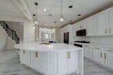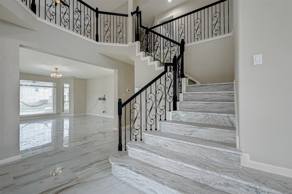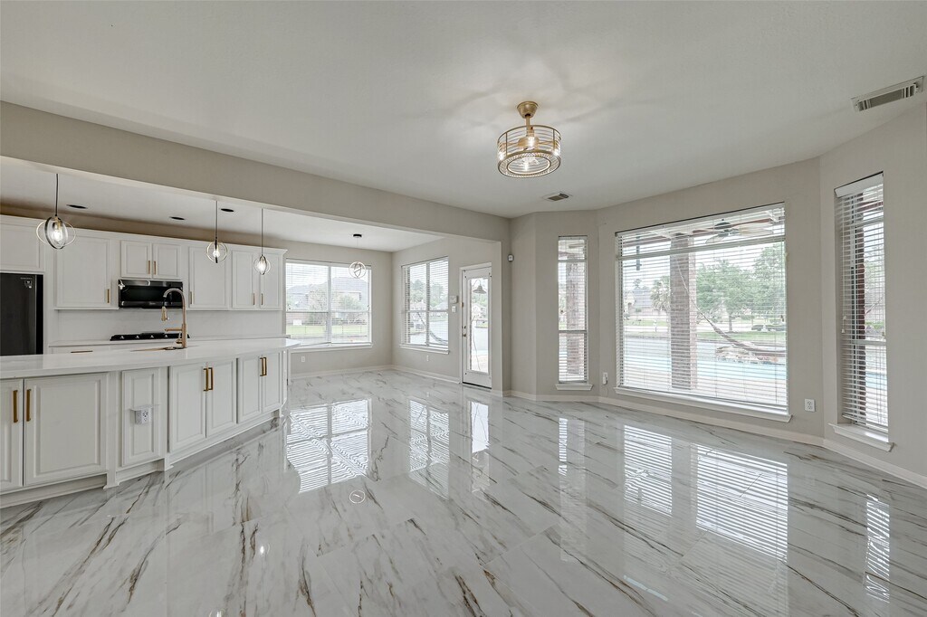 This luxury 6 bed 3.5 bath home with its 270-degree waterfront view in a gated community sets the stage for a truly exclusive living experience. The covered porch,balcony,infinity pool,spa,and private pier offer residents the opportunity to indulge in outdoor activities and relaxation against the backdrop of serene waters. The open layout of the kitchen to the formal living,dining,and great room,along with the breakfast area,creates a seamless flow ideal for entertaining guests and fostering social connections. The modernized interior with bright ceramic tiles,quartz countertops,white shaker cabinets,lighted mirrors,and show-stopping granite stairs not only adds elegance but also ensures low maintenance,enhancing the overall appeal of the home. This property offers a harmonious blend of luxury,comfort,and waterfront living,making it highly desirable for those seeking an upscale lifestyle. It truly embodies the epitome of exclusive living in a picturesque setting. MLS# 50664850