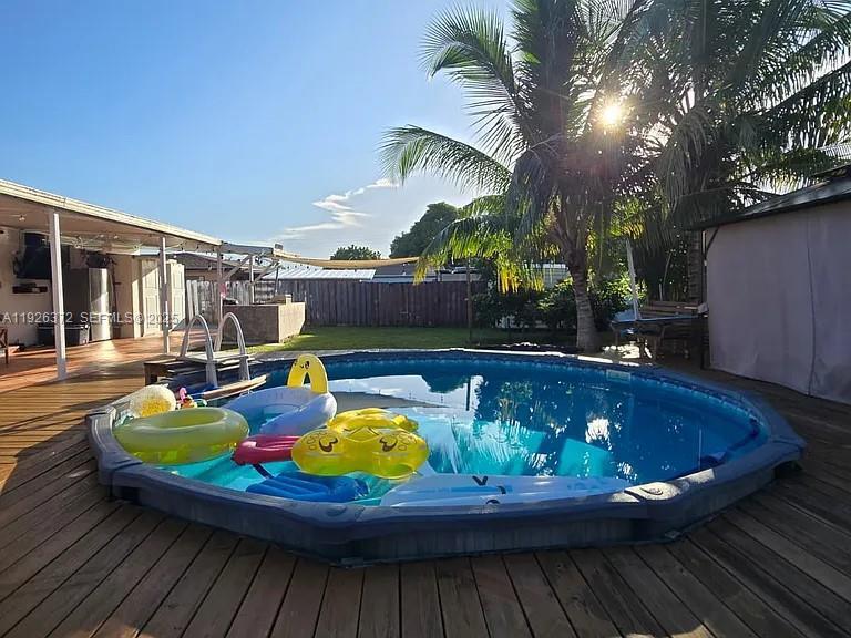 Welcome to your dream rental home in Miami! This beautiful single-family residence perfectly blends modern interior style with exceptional outdoor living. Inside, enjoy a spacious open-concept layout featuring 3 bedrooms with custom-built closets and 2 full bathrooms. The heart of the home is the contemporary kitchen, boasting premium appliances and a large island that connects seamlessly to the living space.The real showstopper is the backyard oasis. Step out to a covered terrace that houses a convenient laundry area and a fully equipped outdoor kitchen with a built-in barbecue and sink. Relax by the sparkling private pool, surrounded by a stunning wood-style deck ideal for entertaining. Includes a storage shed and is located in a peaceful neighborhood near schools and shopping.