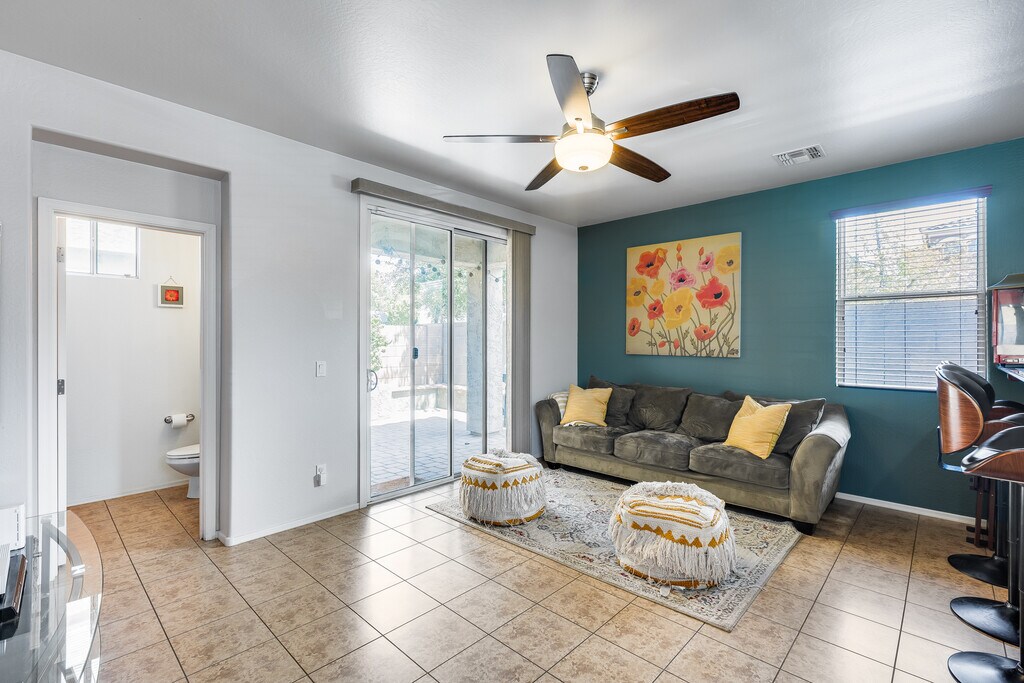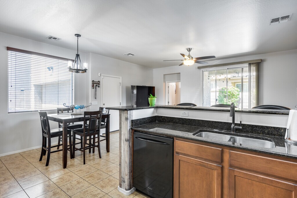 Step into comfort and convenience in this beautifully maintained 4-bedroom, 2.5-bath home located in Desert Springs Village. Enjoy elegant granite countertops, tile flooring throughout, and a cozy kitchen with all appliances included. The open layout flows into a cozy living area and a covered patio, perfect for relaxing or entertaining.This home offers modern finishes, a functional floor plan, and is situated in a quiet, family-friendly neighborhood close to parks, schools, and shopping. Pet-friendly | Rent: $2,100/month | Early December