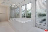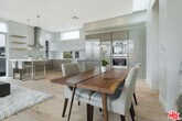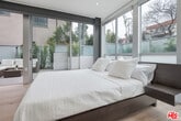 Stunning contemporary multi-level townhome with a brilliant orchestration of light, steel, and walls of glass. This 3-bedroom, 3.5 bath home features white oak floors throughout, Kitchen with Bosch stainless steel appliances, quartz counter top, glass backsplash and eating counter. Master suite has a large enclosed tile patio with garden landscaping, oversized walk in closet, soaking tub, and a large shower. The private spaces include 2 additional bedroom suites. Enjoy the beautiful sunsets from the view roof deck with panoramic and ocean vistas. Additions include direct access of 2 car parking garage, 1 dedicated guest space, laundry closet, 3 zone a/c, and in-unit elevator. Photos are of model unit in the complex and may not represent actual unit. Available for move-in May 1. MLS# 26672553