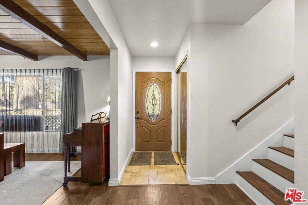 For lease: Gorgeous Wrightwood retreat located just minutes from the Country Club, the Village, and Mountain High Ski Resort. Situated on an expansive 16,500 sq ft tree filled lot, this updated 2,474 sq ft home offers 4 bedrooms, 2.5 baths, and multiple living spaces ideal for relaxing or entertaining. The open floor plan features a bright living room, a family dining room with a wood burning fireplace insert, and a beautifully updated kitchen with granite counters, newer stainless steel appliances, under cabinet lighting, and a large peninsula bar.The living room showcases recessed lighting, upgraded windows, a dining nook, and a sliding door leading to the sunny backyard deck. The primary suite includes vaulted ceilings, tree views, and an electric color changing fireplace heater, plus an updated bath with separate tub and shower. Additional highlights include spacious secondary bedrooms, one with backyard access, laminate and tile flooring throughout, a whole house fan, and a 2 car tandem garage with front and back doors.With its spacious layout, prime location, and serene lot, this home offers a comfortable mountain living experience. A rare leasing opportunity in Wrightwood, ready for occupancy. MLS# 26715675