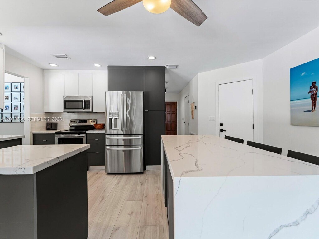 Fully renovated 4 bed, 2 bath home located in the highly desired Flamingo Gardens neighborhood of Cooper City. Situated on a waterfront lot of over 20,000 SF. This stunning home offers modern upgrades throughout and an expansive backyard oasis. The home features a brand-new kitchen with new stainless steel appliances, custom cabinetry, and an open layout. The split-bedroom floor plan includes a spacious primary suite, large walk-in closet with built-ins, and access to the patio. Enjoy completely redone spa pool (2024), expansive green space, and a large backyard gazebo. Walking distance to Griffin Elementary and located in one of Cooper City’s top-rated school districts. No HOA. This is a rare opportunity to lease a fully renovated home on one of the largest lots in the area. MLS # A12008269