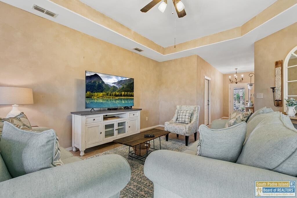 Welcome to coastal living at its best! This charming 3-bedroom, 2-bath Golf Villa sits in the heart of the South Padre Golf Community and comes fully furnished and turn-key. It's ideal for year-round living, a seasonal escape, or a rental investment. Inside, the open layout and designer touches create a relaxed, stylish feel. The screened-in porch quickly becomes a favorite spot — perfect for watching native birds, enjoying tropical landscaping, and taking in those unforgettable sunsets. Tucked away on a peaceful cul-de-sac, this home offers easy access to fantastic community amenities: two heated pools, a workout room, tennis and pickleball courts, a clubhouse, and an 18-hole golf course. With South Padre Island beaches, SpaceX, LNG and the Port of Brownsville nearby, the location couldn't be more convenient. Available for May 1st move in. Landlord is a licensed real estate broker.