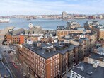 Located on a charming North End street,steps from Boston's historic Waterfront and the Rose Kennedy Greenway,this beautiful south facing one bedroom home exudes warmth and style. The entry foyer,currently serving as a home office area,leads to a generous bow front living room,which features gleaming hardwood floors,high ceilings,exposed brick and a wall of windows. The full open style kitchen offers maple Euro cabinets,new appliances and an inviting stone breakfast bar. The oversized master bedroom,with hardwood floors,features a custom closet,in-unit laundry. A vibrant,full tile bath with pedestal sink,linen closet and coveted bathroom window complete this home. The building offers a large common roof deck with panoramic water and city views. There is professional off-site management. 8-12 Battery Street is a non-smoking complex. Sorry,no pets. Battery Street is short walking distance from the cafes,shops,restaurants and historical sites of the exciting North End. MLS# 73484305