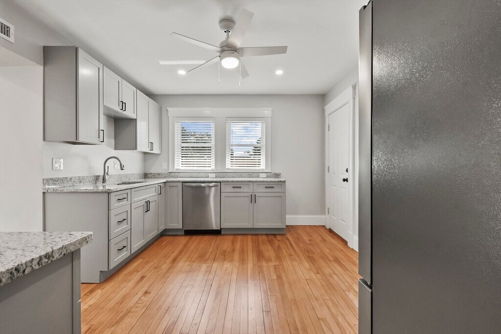 Two Units available. First and second floor.This well-maintained 2-family home offers just over 2,460 sq. 1230 sq ft. per unit,each featuring 2 bedrooms and 1 full bath. Both apartments boast gleaming hardwood floors,central A/C,recessed lighting,ceiling fans,oversized closets,and in-unit laundry. The updated kitchens include stainless steel appliances,granite countertops,and modern cabinets,while the first-floor dining room is accented with a charming built-in China cabinet. Unit 2 adds even more with a spacious mudroom at top of the stairway,and a composite covered balcony—perfect for relaxing outdoors. Outside,enjoy a fenced yard and rare parking for up to 6 vehicles. Move right in and start living! MLS# 73444005
