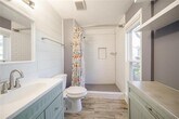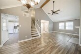This charming two-story home recently renovate and located in a tranquil cul-de-sac lot & near a wooded greenbelt. Once inside, you are welcomed by an inviting open living & dining area with vaulted ceilings, a cozy fireplace, and an abundance of natural light that showcases the laminate floors throughout the main living areas. The staircase boasts wood detailing, adding warmth & character to the home. Eat-in kitchen has granite countertops & a breakfast nook with a large bay window that overlooks the beautifully landscaped backyard, with mature shade trees, and a large covered patio for outdoor entertaining! All the bedrooms are upstairs, ensuring a peaceful & private retreat. Updates: Installation of French drains & windows. Nature enthusiasts will love the proximity to Oak Point Nature Preserve, offering miles of jogging & bike trails for active outdoor enjoyment. Near major routes and multitude of various activities, shopping & dining options! The house is available on 10-21-2025