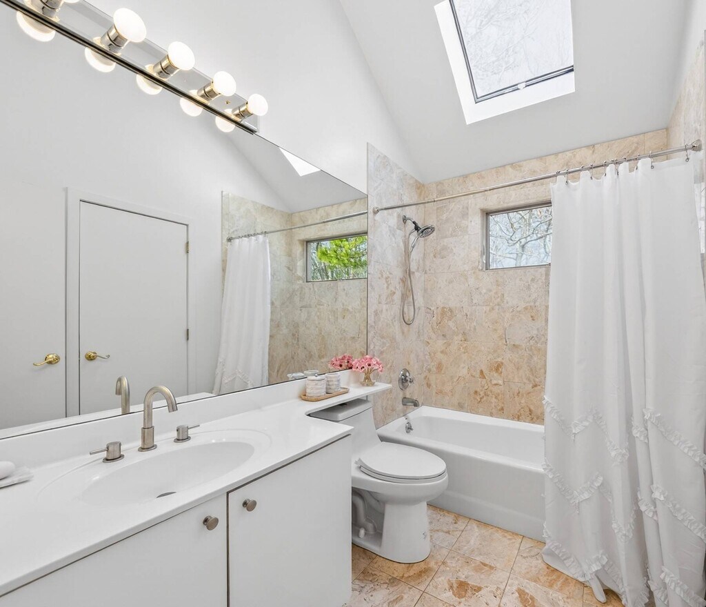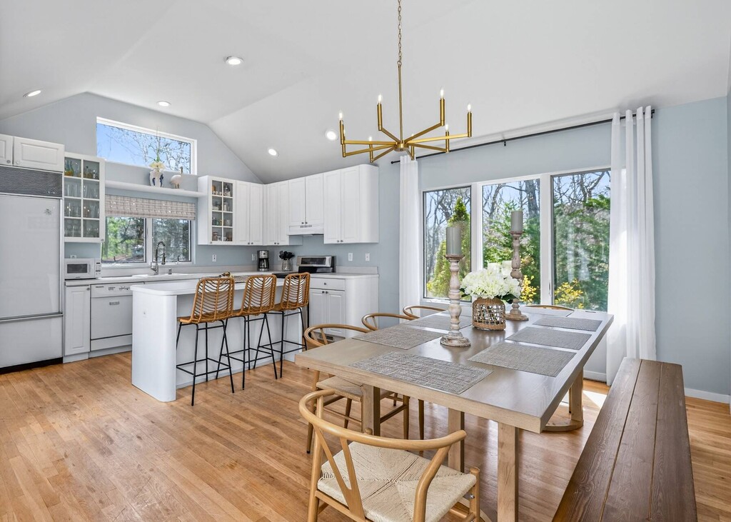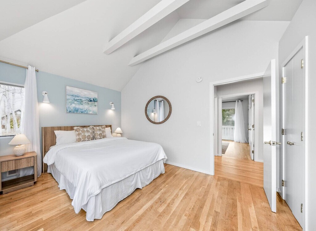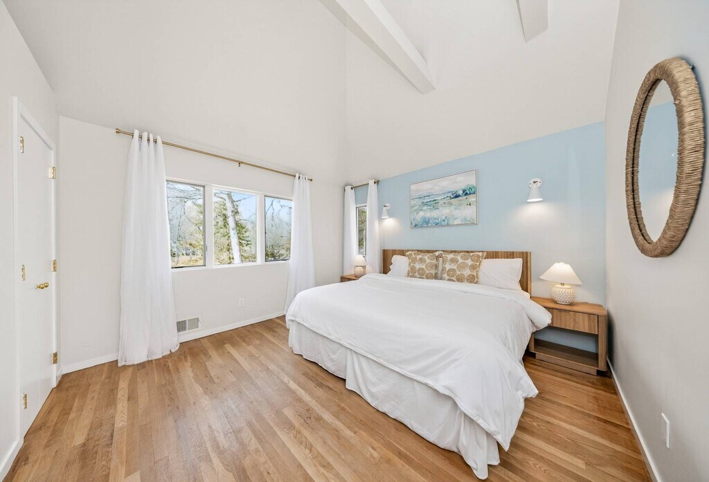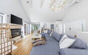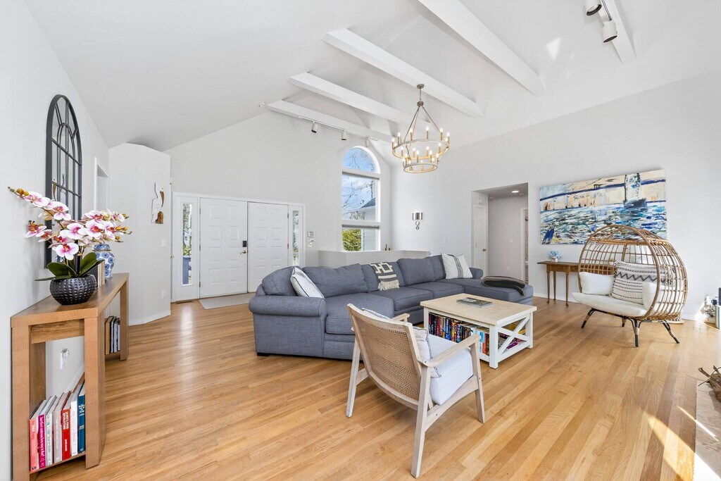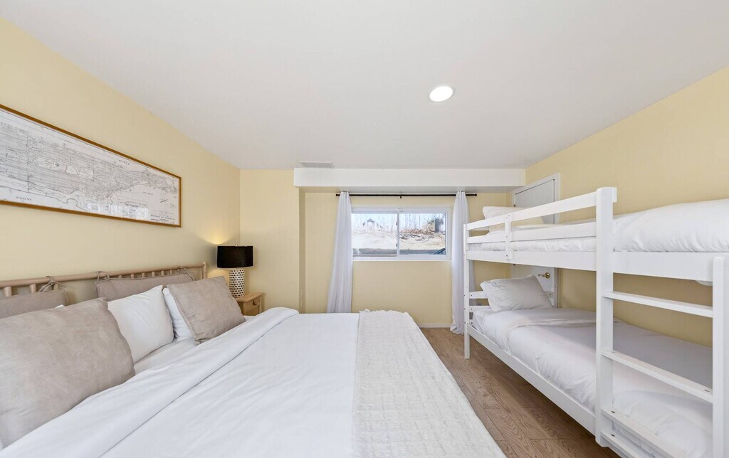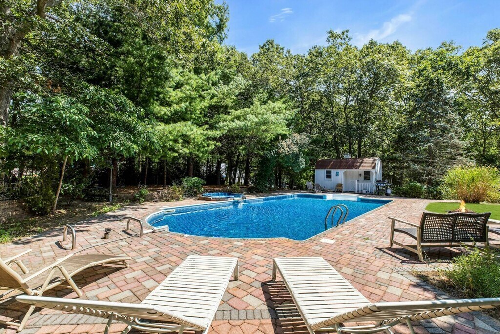 Tucked away on a quiet dead-end street among private, wooded acre lots, this light-filled Hamptons home offers the perfect summer escape with space to relax, gather, and entertain. Enjoy long summer days by the 20' x 40' heated pool, surrounded by peaceful natural surroundings and room to spread out. Inside, the main living area features soaring vaulted ceilings and an open-concept layout that flows into the eat-in kitchen with island seating-ideal for family meals or hosting guests. Sliding doors lead seamlessly to the deck, creating effortless indoor-outdoor living for summer dining and lounging. The primary en-suite bedroom and two first-floor guest bedrooms all feature king-sized beds, vaulted ceilings and generous closet space. The lower level is designed for fun and flexibility, with a spacious recreation and lounge area complete with wet bar, ping pong, foosball, accessory kitchen, TV area, full bath, office, and an additional king-size guest bedroom with bonus bunk beds. Two sliding glass doors open directly to the patio and pool area, making it easy to move from games indoors to poolside afternoons outside. Located just 2 miles from beautiful West Landing Beach, and conveniently positioned between the vibrant villages of Westhampton Beach and Southampton for shopping and dining. Hampton Bays is especially loved for its exceptional waterfront restaurants, relaxed coastal charm, and easy access to both the bay and world-class ocean beaches. [[Rental Registration # RP260404]] EH RR #: RP260404 Rental Terms: August: $30,000 June: $18,000 August - Labor Day: $37,000 Other / Short Term - 6/15/2026 - 7/14/2026: $30,000