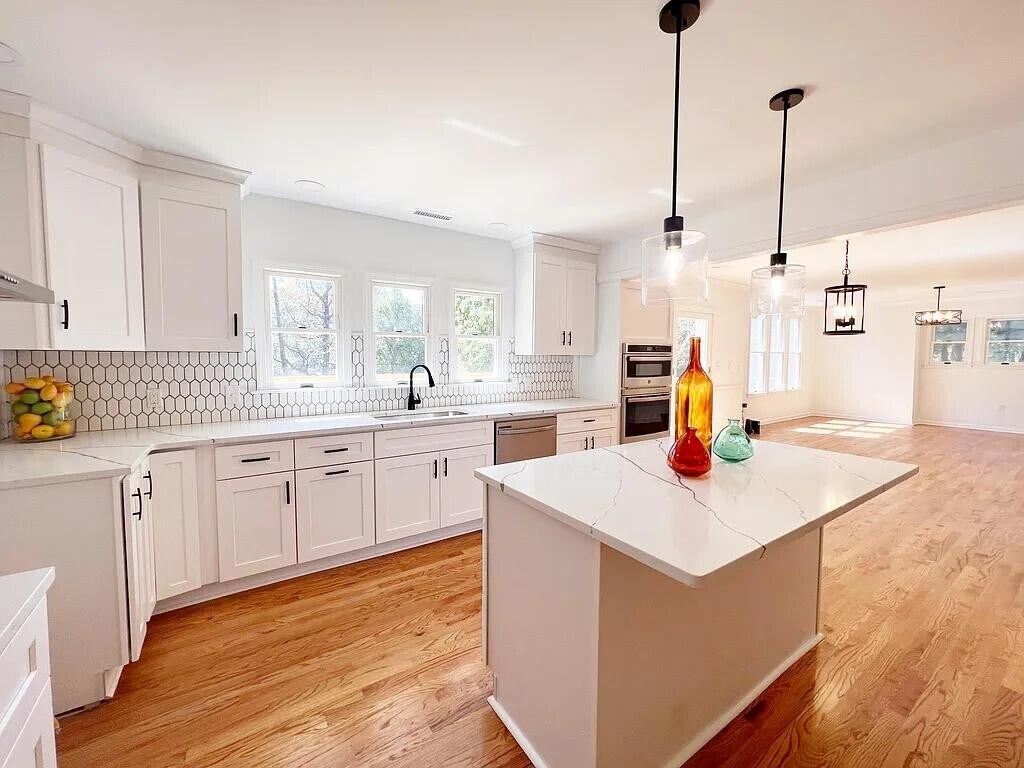 This completely updated stunning Tudor design home is on the 9th fairway of Link Side Course of Greenville's Premier Golf Community of Pebble Creek, with Swim, Tennis and Clubhouse Grill/Bar. The view from the newly built oversized deck is absolutely gorgeous. The split floor plan is designed with the Master on the main or lower level. There are four extra-large bedrooms and 3 newly renovated full baths with luxury tile showers seamless shower and beautiful new granite vanities. All new luxury vinyl plank floors on the lower level installed and new hardwood floors on the main level. The all new kitchen is a gourmet chef's dream. With all new over abundance of lovely custom white cabinetry, quarts countertop with custom designed white tile backsplash, new stainless-steel appliances. Great Schools and location to GSP, BMW or 15 min Downtown Greenville. Want more State Parks with hiking trails nearby. 1 year lease minimum. No smoking/ vaping. No cats. Contact Friddle Property Management at