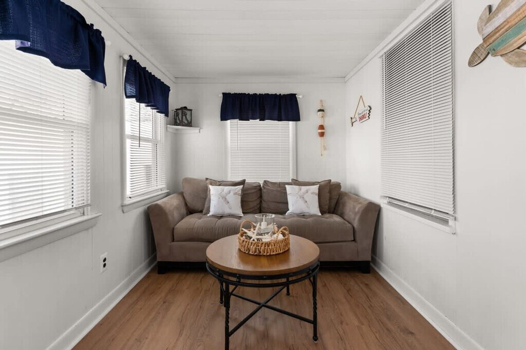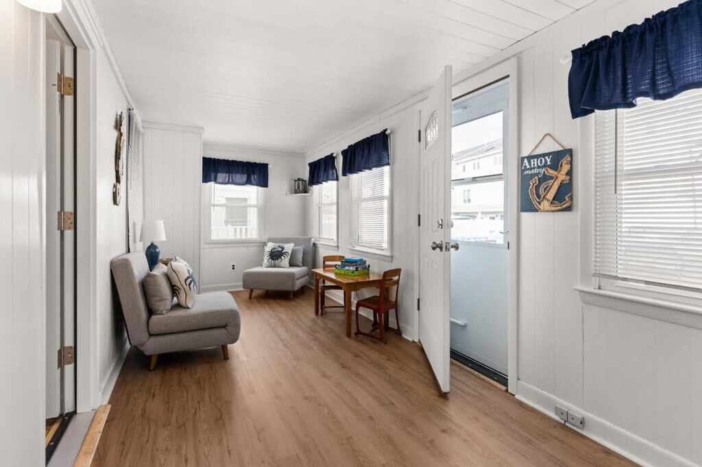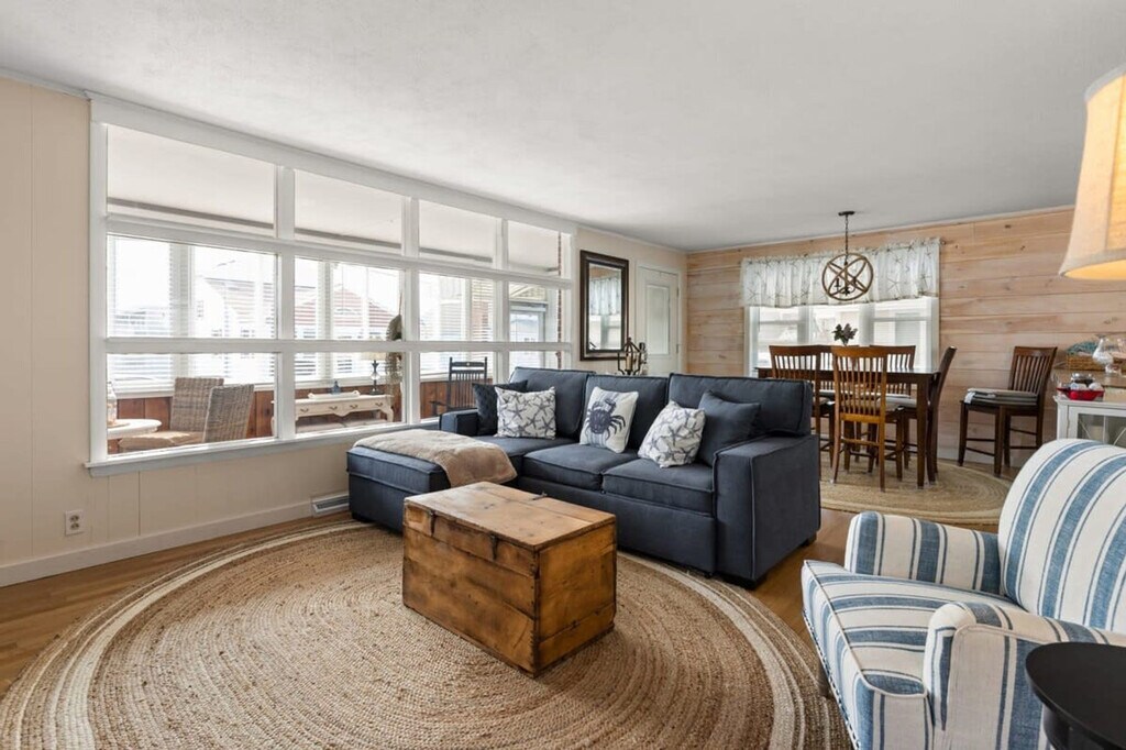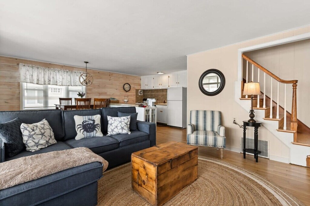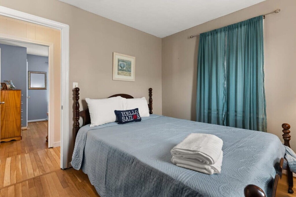 Feel at home in the "Harris Ave Hideaway," a cozy 3-bedroom home that comfortably accommodates up to 8 guests. Nestled in the heart of Hampton Beach on the harborside, this home offers easy walking access to the public beach and charming harbor. This 1,358 sqft home features high-speed internet, heat and window AC units, smart TVs with the ability to log into your own streaming services, and all major appliances including a dishwasher. There is also an in-unit washer and dryer room on the first level. The kitchen is stocked with a starter supply of essentials including shampoo, body soap, hand soap, paper towels, toilet paper, coffee, sugar, and creamer to help you settle in. Enjoy the private back deck with a gas grill and views of the harbor. There are also 4 off-street parking spots available. Hampton Beach is a premier resort town in New Hampshire boasting a wide variety of activities for all ages, including nightly concerts, arcades, restaurants, mini-golf, water activities, and fireworks, and is rated among the top 3 cleanest beaches in the U.S. This home is minutes from The Hampton Casino venue and Blue Ocean Concert Hall, and a short car ride from the quaint seaside towns of Newburyport, MA, and Portsmouth, NH, and outlet shopping in beautiful Kittery, ME. Hampton is perfectly located for a day trip to Boston, Portland, ME, and the White Mountains. No pets, smoking, vaping, or drugs are allowed. No events, parties, or large gatherings are permitted. Quiet hours are between 9 PM and 9 AM. A Ring Doorbell Camera is on the exterior of the property facing the outside of our entrance, and a Minut noise monitor system is located inside the property in the kitchen/living room. You must be at least 25 years old to book. Registration Number: 103689 [SI]