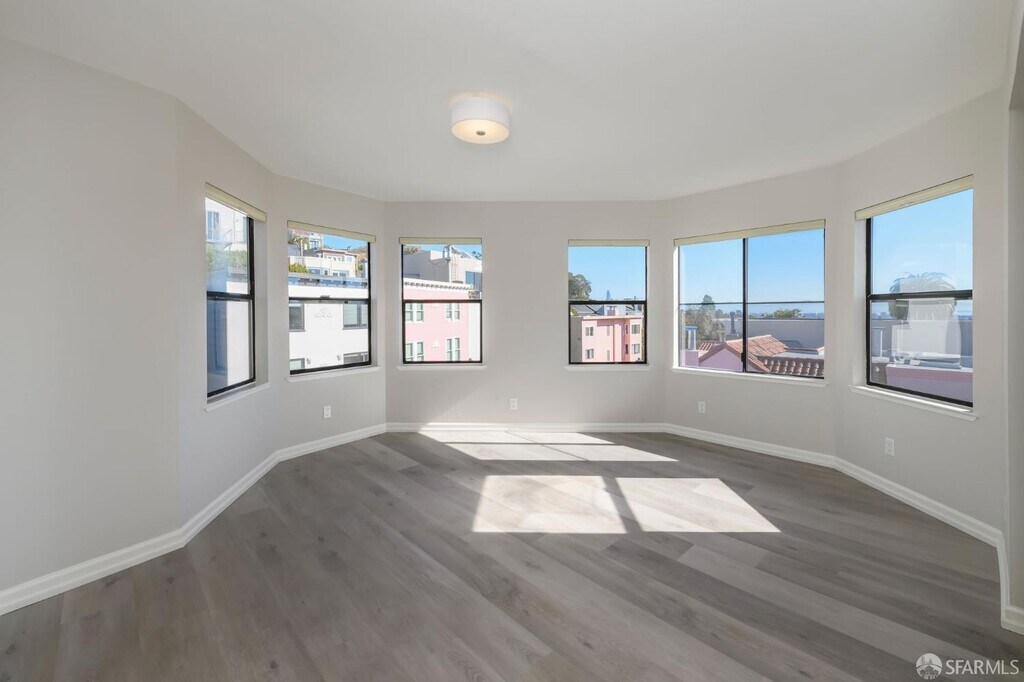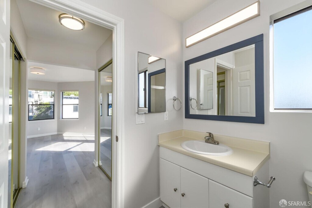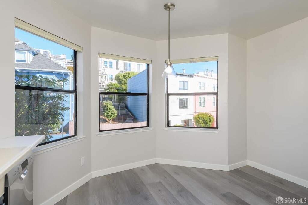 Perched in Corona Heights, just a few blocks from the Castro MUNI station, this spacious, top floor, townhouse style apartment provides a desirable combination of privacy and convenience. The first floor offers a living room, kitchen, full bath and one bedroom/office/dining room/flex space. People that like to entertain while keeping their private spaces separate are going to love this layout. The second floor features a second living room, laundry, second full bath, second bedroom and the primary suite with a third full bath. Views from the primary suite include Salesforce Tower. Access to the balcony area, featuring views from east bay to Sutro Tower, completes this level. Recent upgrades include: *Fresh paint *Lighting *Flooring *Plumbing fixtures & other hardware *Low profile window shades