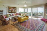 Experience the charm of Kensington with this stunning 3-bedroom, 2-bathroom home, offering breathtaking views of the San Francisco Bay and Golden Gate Bridge. This single-story home, accessible via stairs, features a gas fireplace and a furnished deck, perfect for unwinding while enjoying the scenic beauty. With a prime location near wedding and event venues, this chic hideaway ensures comfort and convenience for your Bay Area visit. Feel at home in this well-appointed space, complete with Smart TVs, a jetted tub, and a dining table with a breakfast nook. The fully equipped kitchen includes a dishwasher, refrigerator, stove, microwave, and all the cooking basics you need, along with a drip coffee maker, toaster, and blender. Enjoy the convenience of a washer and dryer, complimentary toiletries, and free WiFi throughout the home. Parking is available with a carport for one vehicle and additional free street parking. While the property does not offer air conditioning, central heating and ceiling fans ensure a comfortable stay. Nestled in the hills of the East Bay, the small town of Kensington offers a serene escape with its steep terrain and stunning views. Explore nearby Tilden Regional Park or the vibrant Downtown Berkeley, both just a short drive away. While the property provides a carport and free street parking, be prepared for a bit of walking if you choose to explore the neighborhood on foot. This property maintains a no-smoking and no-pets policy, and events or large gatherings are not permitted. The maximum occupancy is six, with no outside guests allowed. Guests must be at least 25 years old to book, and a photo ID may be required upon check-in. The property features two exterior security cameras for your safety, located on the front and back doors, facing each entrance. These cameras are outward facing and do not look into interior spaces. The home is equipped with free WiFi, making it easy to stay connected during your visit. A dedicated workspace is not provided, but the dining table and breakfast nook offer flexible options for remote work. [SI]