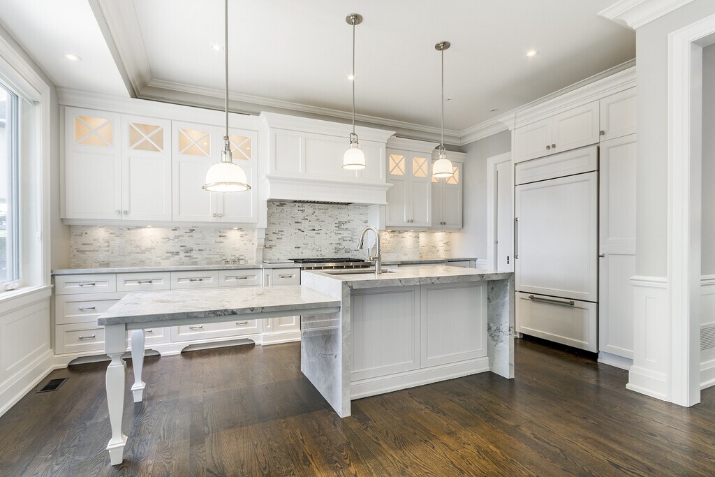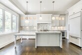 Executive lease opportunity in South Leaside. This turnkey, light-filled four-plus-one bedroom family home offers approximately 3,400 square feet of total living space, including a finished walk-out basement. A welcoming foyer with a built-in entry bench leads to a private front office with custom bookcases, making it ideal for working from home. The open-concept main floor features an elegant living room with window bench seating, as well as a formal dining area highlighted by high ceilings and detailed wainscoting. The gourmet kitchen is designed for both everyday living and entertaining. It features custom cabinetry, marble countertops and backsplash, a centre island with an integrated table, a wine fridge, and high-end appliances. The adjoining family room includes a gas fireplace and a walk-out to a freshly stained cedar deck with a gas barbecue hookup. Oak hardwood floors run throughout the home and are complemented by coffered ceilings, crown mouldings, and custom millwork. The primary suite offers a spa-like five-piece ensuite with heated floors, a rain shower, and a freestanding soaker tub. Three additional generously sized bedrooms complete the upper level, two of which include ensuite bathrooms. The finished walk-out basement features a large recreation room with high ceilings, new broadloom, a gas fireplace, a nanny or guest suite, a three-piece bathroom, and direct access to a private fenced yard. Additional highlights include a stone façade with cedar shake shingles and excellent curb appeal. The home is located in one of Toronto’s most sought-after school districts, including Rolph Road Elementary, Bessborough Drive, and Leaside High School. Parks, shops, restaurants, and everyday amenities are all within walking distance. If you have been searching for a rental that feels like a true home rather than a temporary stop, this residence truly stands out.