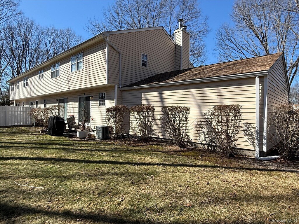 Lina LopesWelcome to this beautiful 2 bedroom, 1.5 bath end-unit townhouse located in the desirable Colonial Woods community in Yaphank. The first floor welcomes you with tile flooring upon entry and features a spacious living room highlighted by a charming fireplace with a beautiful mantle. The main level also includes a convenient powder room, a dining area with access to the backyard, and a kitchen equipped with stainless steel appliances. The home also offers access to a full partially finished basement, providing additional space for storage, utilities, and a laundry area. The second level features a large primary bedroom with his and her closets, a second bedroom, and a full bathroom. Recessed lighting is found throughout the home, along with central air conditioning and a Google Nest thermostat for modern comfort and efficiency. Enjoy driveway parking and the many amenities Colonial Woods has to offer, including a sparkling pool, picturesque park, tennis courts, basketball courts, and more. Ideally located adjacent to The Boulevard complex, featuring a variety of shops, restaurants, and everyday conveniences just minutes away.