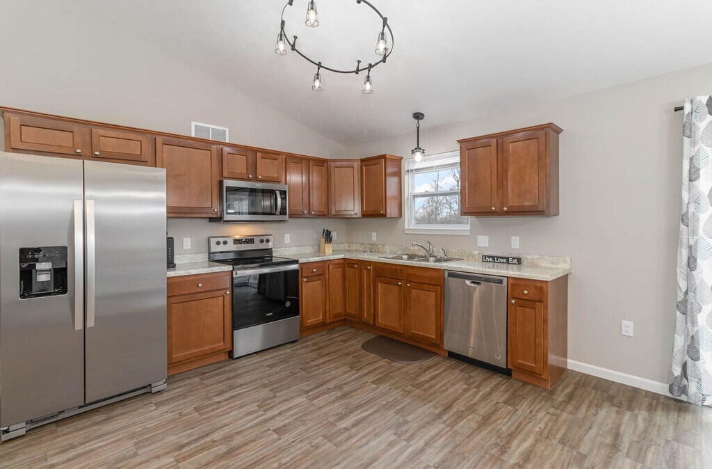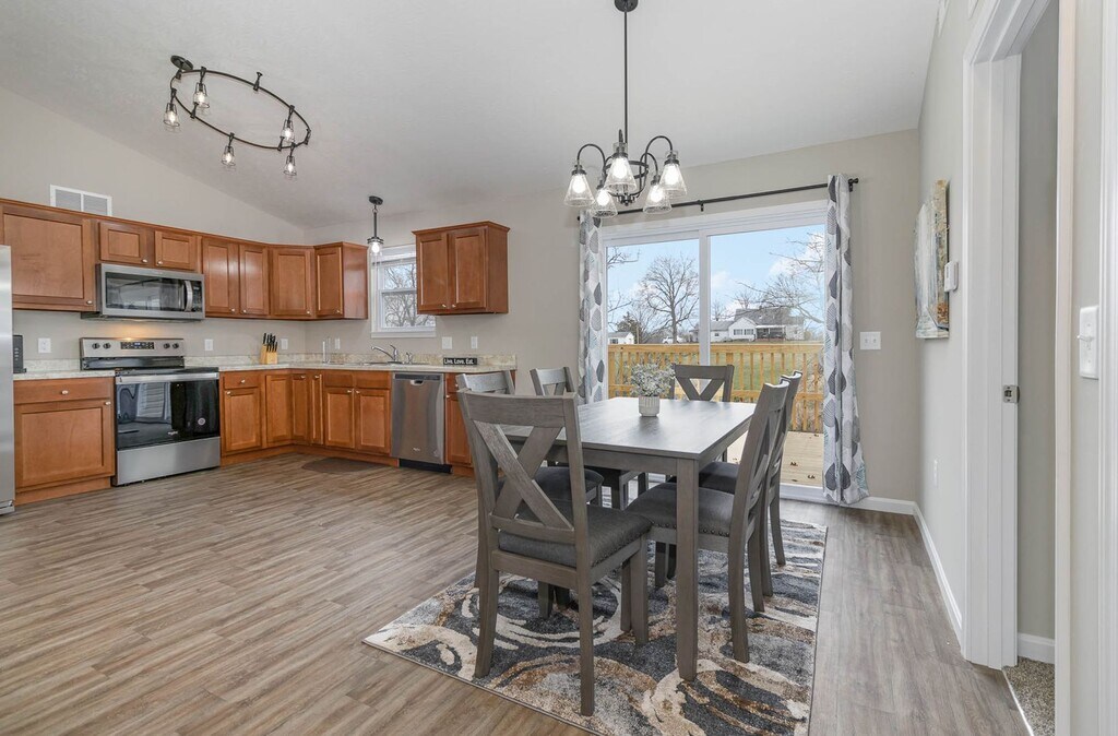 Welcome to Hamilton, Ohio- the home of Spooky Nook sports complex and close to many other fun amenities such as Kings Island and Wright Patterson Airforce Museum. Hamilton is also central to downtown Cincinnati and downtown Dayton. You can easily access major highways in a matter of minutes. This home is brand new and has so much to offer. The home itself is located on a private drive that has approximately 60 homes off it. We have several furnished homes in a row that can accommodate large groups or multiple families traveling together. A blend of comfort, style, and convenience greets you as soon as you enter our newly built ranch home. While decorating this inviting retreat, we have worked hard to create a home away from home feeling for our guests. The open-concept floor plan in the living space allows room for many guests. Everyone in your group will have room to mingle and relax. The living area is the home's heartbeat, successfully combining the relaxing living room with an inviting dining area and a fully equipped kitchen. Large windows allow plenty of natural light to illuminate the space throughout the day. The new carpet, laminate flooring, and tasteful décor create a feeling of warmth and coziness. Three comfortable bedrooms are designed to offer all the rest you need after a long day of exploring the exciting city of Hamilton. The home offers relaxation and comfort, and we can't wait for you to experience it for yourself. ? LIVING ROOM ? The living room is a part of the contemporary open floor plan. See what the chef is up to, help them set the table, or unwind on the cozy sofa with a good book. ? Comfortable Leather Sofa with Pillows ? 65 Inch Smart TV ? Coffee Tables ? Reading Lamps ? KITCHEN & DINING ? Even the most demanding chefs would enjoy preparing delicious meals using numerous state-of-the-art cooking appliances. In addition, spacious countertops provide plenty of workspaces for you to prepare delicious homemade delicacies. ? Microwave ? Stove ? Oven ? Toaster ? Refrigerator/Freezer ? Keurig Coffee Maker ? Dishwasher ? Sink - Hot & Cold Water ? Trays ? Glasses ? Silverware ? Pots & Pans Serve those delicious meals on the adjacent dining table and let the smell of freshly cooked homemade delicacies invite everyone over for a tasty feast. If you don't feel like cooking, you can always check out one of the many nearby restaurants in the area. ? Dining Table with Seating for 6 ? SLEEPING ARRANGEMENTS - 3 BEDROOMS ? Three tastefully furnished bedroom is designed to provide hotel-like comfort and convenience needed to relax and rest so you can remain energized and do everything you have planned the next day. ? Master Bedroom: King-Size Bed, Ensuite Bathroom ? Bedroom 2: Queen-Size Bed ? Bedroom 3: Two Twin Beds All bedrooms are equipped with a similar set of amenities. ? Premium Pillows, Linens, and Sheets ? Closets with Hangers and Shelves ? Dressers with Spacious Drawers ? Night Stands with Reading Lights ? 55-inch Smart TV in all bedrooms ? BATHROOMS ? As you already know, the master bedroom features an ensuite bath. Another full bathroom caters to the remaining two bedrooms and the living area. You don't have to worry about packing towels or essential toiletries, as we have already prepared these for you. ? Bathtub with a Shower ? Vanity ? Mirror ? Toilet ? Towels ? Hair Dryer ? Essential Toiletries ? ADDITIONAL ACCOMMODATION ? Traveling in a larger group, or your preferred dates are already taken? You'll be happy to know that we offer additional accommodation in the area. Please browse our host profile for the complete list of Homes. ? COVID-19 SANITIZATION ? The health, safety, and well-being of our guests are of utmost importance. For this reason, we use a thorough cleaning process after each check-out. ? NO SMOKING INSIDE ? Please refrain from smoking inside the home! Any smoking evidence will result in a fee for odor removal and furniture cleaning. ? NO PARTIES/EVENTS ? We kindly ask you to treat our home as your own to preserve its pristine condition for future guests and your return visits. Let us know if you have any questions regarding this beautiful home. We are more than happy to assist!