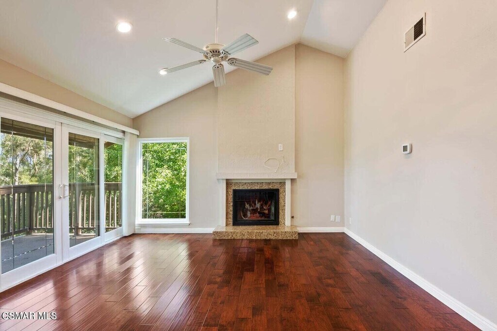 You'll enjoy the privacy and solitude offered by this entirely detached townhome within the Country Vista community of Oak Park. This home has been beautifully upgraded with gleaming hardwood flooring throughout the living areas, high-quality carpeting in the primary bedroom and woodlike flooring in the secondary bedrooms. The kitchen opens to the family room and boasts granite countertops, matching appliances and high-end cabinetry. The master suite is located on the main level with great views, ample closet space including a built-in safe, and a gorgeous attached bath with a walk-in tile shower, dual sinks with granite counters, and nice tile flooring. Downstairs you'll find both secondary bedrooms and a shared bath, also with granite counters and a tiled shower/tub. Off the family room is a half-bath, indoor laundry and dual sliding-glass doors leading to an oversized balcony that is just perfect for relaxing and taking in the stunning views of the mountains and surrounding treetops. This home also includes a detached 2-car garage and access to the community pool, spa, and tennis courts!