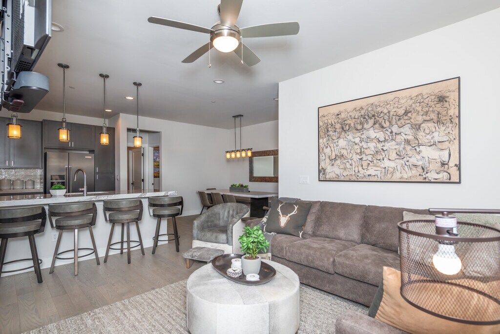 Luxury All-Inclusive Furnished Townhome in Rendezvous $6,500/month all inclusive (with all utilities, Wi-Fi and premium amenities included: A RARE FIND! Experience refined mountain living in this fully furnished luxury corner townhome in the coveted Rendezvous community all-inclusive (with all utilities, Wi-Fi, hot tub maintenance, etc). Designed for comfort and style, this residence showcases top-of-the-line finishes throughout: 3" slab countertops, black stainless-steel KitchenAid appliances, premium hardwood flooring, custom tile work, and designer lighting that together create a warm, sophisticated mountain-modern aesthetic. The home is beautifully furnished with high-end furniture and decor, offering a turnkey living experience that feels both elegant and inviting. The bright, open living space seamlessly extends outdoors to a covered patio with seating and a gas barbecue, perfect for entertaining or taking in the crisp alpine air. After a day on the slopes or trails, relax in your spacious 8-person Bullfrog spa beneath the stars. Convenience and functionality meet luxury with a two-car attached garage and a spacious storage room for all your mountain gear, keeping equipment organized and ready for your next adventure. There is also additional parking spaces right next to this unit. Nestled within Rendezvous, residents enjoy direct access to miles of scenic hiking and biking trails, all while being just minutes from downtown Winter Park's vibrant shops, dining, and year-round activities. Enjoy the complimentary town shuttle that stops nearby the property.