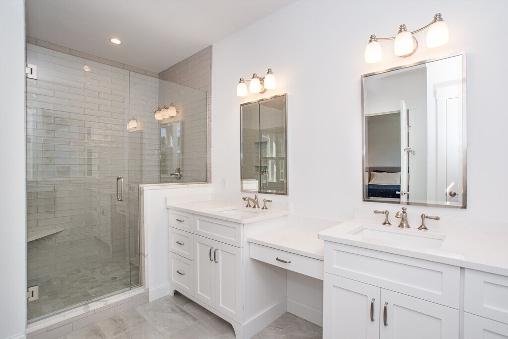This beautifully appointed home offers comfort,quality,& ease of living in a desirable 55+ community. The main living area features an open-concept layout,abundant natural light,& 18-foot cathedral ceilings. A central gas fireplace creates a welcoming focal point,while the composite deck extends the living space outdoors. The chef’s kitchen is designed for both function and style,showcasing high end appliances & quartz countertops. Both main-level bedrooms offer the convenience of luxurious en-suite baths,complete with brushed nickel hardware,9-foot vanities,thoughtful built-ins & custom walk-in closets. A washer and dryer on the main floor further enhance everyday ease. Hardwood floors run throughout the main living spaces. The finished lower level provides a private retreat for guests or extended stays,w/ an additional bedroom & full bath,a cable-ready media area,eco-friendly wall-to-wall carpeting. A two-car attached garage completes this exceptional offering. MLS# 73488700