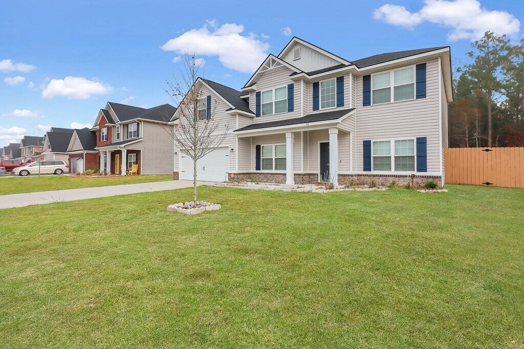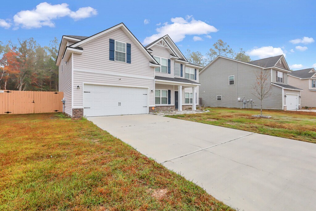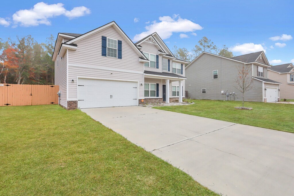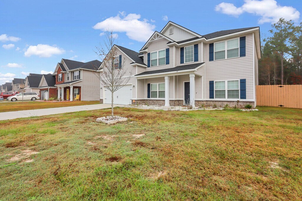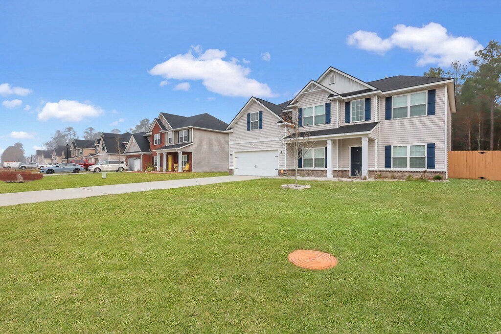 Welcome to the Richland Covenant, a stunning residence featuring 4 bedrooms and 2.5 bathrooms, designed with the perfect open floor plan for modern living. As you step through the grand two-story foyer, you're immediately welcomed by the elegance of formal living and dining rooms on either side, creating a sense of space and luxury. This inviting entrance leads you down a short corridor to an expansive grand room, where an electric fireplace adds warmth and charm, making it an ideal gathering spot for all. The grand room seamlessly opens to a beautiful kitchen, where granite countertops and a central island provide ample space for cooking and entertaining. A corner cabinet offers additional storage, while a conveniently located powder room and mudroom just off the garage complete the first floor, ensuring both style and practicality. Upstairs, the main suite is a true retreat, featuring an oversized bedroom with a cozy sitting area, perfect for relaxation. The suite boasts two generous walk-in closets, offering plenty of storage space. The luxurious main bathroom includes a garden tub for soaking, a separate shower, and two individual vanities, providing both convenience and privacy. The secondary bedrooms, all well-proportioned, share a thoughtfully designed hall bath, ensuring comfort for all members or guests.