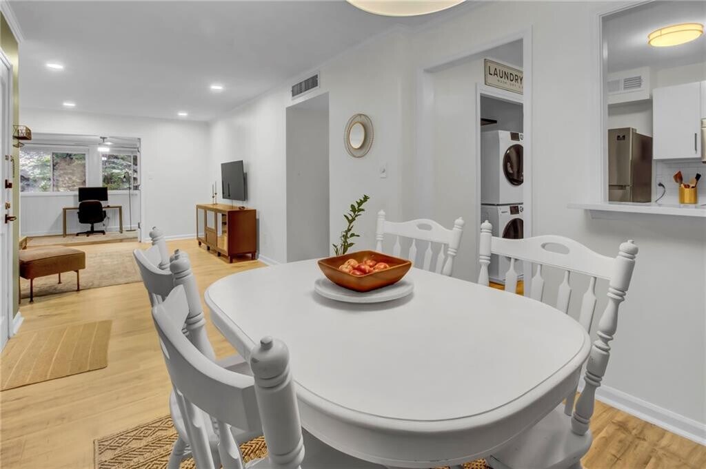 Just Listed! Beautifully Renovated 2BR/2BA Condo in Sought-After Cross Creek Subdivision!! This stunning bottom-floor unit offers the perfect blend of comfort,convenience,and style. Featuring two spacious bedrooms and two full bathrooms,this condo has been completely updated. The gorgeous kitchen boasts sleek quartz countertops,updated cabinetry,stainless steel appliances and stylish fixtures. Offering over 1,000 square feet of stylish,move-in-ready living space. This home boasts modern upgrades throughout—including gleaming hardwood floors,stackable washer/dryer and so much more. The luxurious primary suite includes a double vanity and a marble walk-in shower,offering both comfort and elegance. The bright,open layout flows effortlessly to a private,wooded backyard and enclosed patio—providing peaceful views and easy exterior access perfect for entertaining or unwinding in nature. This home combines a quiet,natural setting with a prime location close to shopping,dining,and major routes. Residents enjoy access to a host of community amenities,including a swimming pools,gym,golf course,and tennis courts,cafe and more. Must earn at least 3x the rental amount. App fee is $100/adult. Security deposit is $2200. Serious inquiries only!! Text for quickest response and to schedule showings.