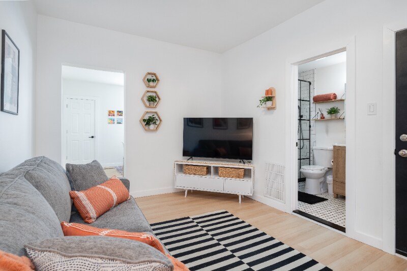 Property Id: 2206043 Welcome home to a renovated, FULLY FURNISHED 1 bed/1 bath apartment! - Upgraded kitchen w/ stainless steel appliances, quartz countertops, plenty of storage - updated bath w/ walk-in shower -central air + heat - designated office area - private, fully fenced yard - 10 min walk to the 45th St light rail train station - 2 blocks from bus to Jersey City and downtown Manhattan - With public transit:15 min to Jersey City, 25 to Newark, 30 to Hoboken, 40 to Manhattan - Walkable Stephen R. Gregg park (waterfront w/ dog park, huge playground, etc.) - Minutes to COSTCO, Starbucks, T.J. Maxx - Within 2 blocks: restaurants, coffee shops, Retro Fitness, Walgreens, grocery store; Requirements: - $55 application fee - Flexible lease terms (2 month min, 2 year max) - Rent: $1900 1-2yrs, $2000 6mo-1yr, $1150 2-6mo - First month + security deposit (based on lease length) due at signing - Utilities included for <6mo lease - Verifiable gross income of 3x rent - 650+ credit score - Cats & small dogs ok