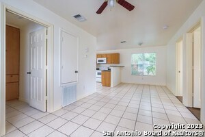Two-bedroom, one-bathroom second-story duplex available for rent in the sought-after Alamo Heights neighborhood. This property boasts a carpet-free interior, with tiled flooring in the main living areas and laminate flooring in the bedrooms. Included in this rental are all necessary appliances, including a refrigerator. Please note that this is exclusively a second-story residence and does not offer access to a backyard.