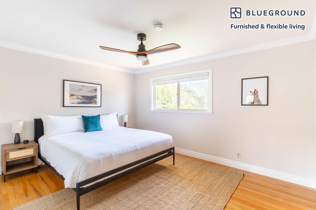 Discover the best of Los Gatos, with this five bedroom house in Belwood-Belgatos. It’ll be easy to simply show up and start living in this beautifully furnished house with its fully equipped kitchen, charming living room, and our dedicated, on-the-ground support. (ID #SFO1614) The advertised rate of $8,000/month is the lowest available price, based on a 6 month(s) and 5 day(s) stay with a move-in date of April 27, 2026. If you’re looking for a 1-year stay, the rate is $9,190/month. Rates vary depending on the duration of stay, season, and other parameters. For exact pricing and additional pricing components, please visit our website and enter your desired move-in and move-out dates. The rate is applicable when billed upfront; it can be higher if billed in multiple payments. Brokers are welcome to reach out. Were you looking for an unfurnished lease? Try Blueground instead and upgrade from unfurnished to furnished living: - Furnished at rates comparable to unfurnished - No setup or furniture costs - save thousands - Move-in ready - save time, just bring your suitcase Designed with you in mind Thoughtfully designed with bespoke finishes, modern furnishings, and a fully equipped kitchen, you’ll enjoy that “I’m home” feeling with this Blueground house. Whether you’re lounging in your spacious living room streaming the latest and greatest entertainment on the smart TV or premium wireless speaker, or getting some well-earned rest on the superior quality mattress with luxury linens, you’ll fall in love with everything this Belwood-Belgatos house has to offer. This house also offers in-house laundry. Sleeping arrangements King Bed, 70.8in/180cm King Bed, 70.8in/180cm Queen Bed, 63in/160cm Queen Bed, 63in/160cm Queen Bed, 63in/160cm Amenities Building amenities unique to this five bedroom house include an on-site: - Dryer - Washing machine - Parking - Pets allowed Arrival and ongoing support The entire house is yours to enjoy! Throughout your stay, you’ll have access to our Client Experience team through the Blueground App. You can schedule additional cleanings, submit maintenance requests, and view our neighborhood recommendations with just a few taps. We’ll share all details upon confirmation of your stay. Other things to note This Blueground house has flexible lease options, allowing you to book it for one month, a year, or more. Pets are welcome, though weight limits and breed restrictions apply and may incur fees. Parking is offered based on availability and is subject to a fee. Please keep in mind that this is a walk up building. We take great pride in ensuring every photo displayed is shot in our own units with our actual furnishings. That said, we regularly refresh our decor and furniture arrangement, which may differ from what’s pictured. Also note - The apartment's fireplace is for decorative purposes only - There are stairs leading up to the entrance of this apartment, but no elevator [SI]