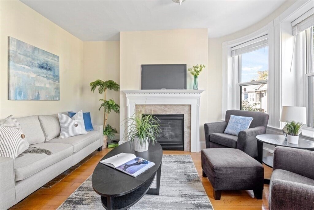 Bright and well-kept 2-bedroom,1-bath apartment in a classic brownstone in the heart of Brookline Village. The unit features a sun-filled living and dining area with bay windows,custom built-ins,and an electric fireplace that adds a nice focal point to the space. The updated eat-in kitchen includes granite countertops,stainless steel appliances,and plenty of cabinet storage. Both bedrooms offer good natural light,hardwood floors,and closet space.Private laundry and additional storage are located in the basement. Excellent location just moments from Brookline Village,Coolidge Corner,and the Longwood Medical Area,with easy access to the Green Line,local parks,restaurants,shops,and hospitals. MLS# 73504057