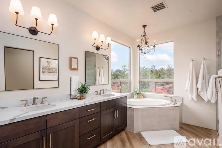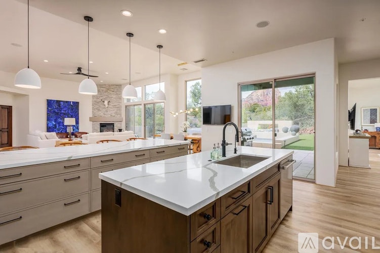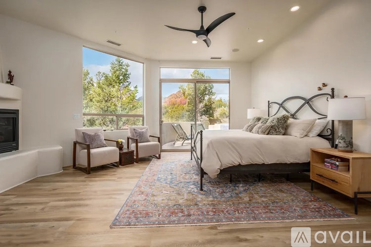 Fully Furnished, Soft Contemporary- ALL Utilities included [plus Cable and Broadband Internet] Extensively Upgraded, Clean & Modern, 4-bedroom/ 3 bath ~4,200 SF Gated Estate, next to private Tennis and Pickle ball Courts walking distance to Whole Foods, numerous Restaurants and all the great things Sedona has to offer! ALL Utilities Included.