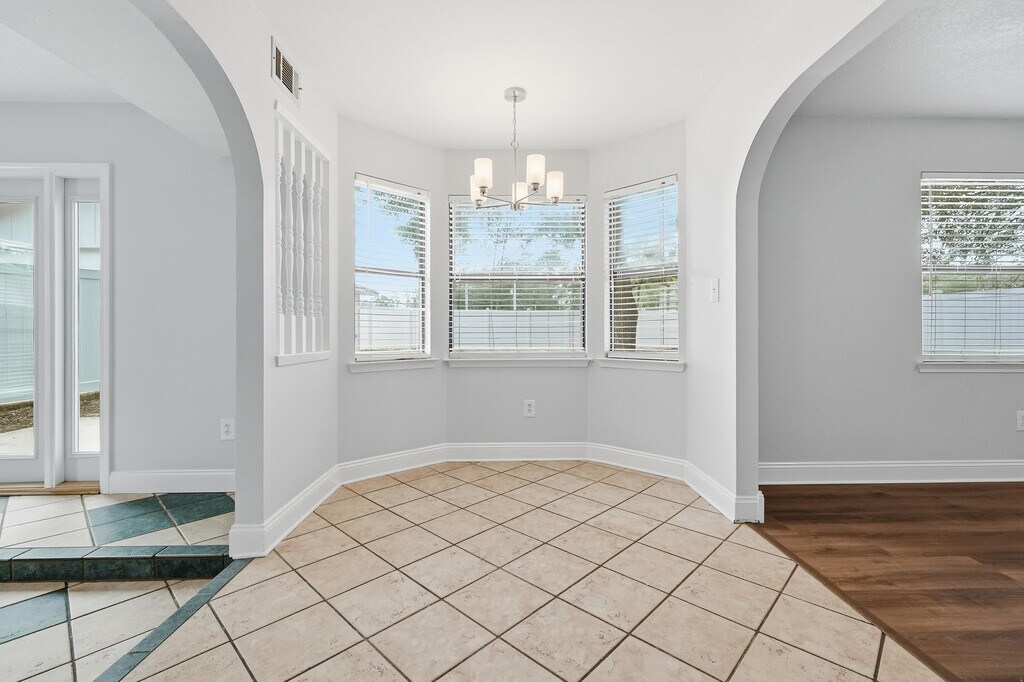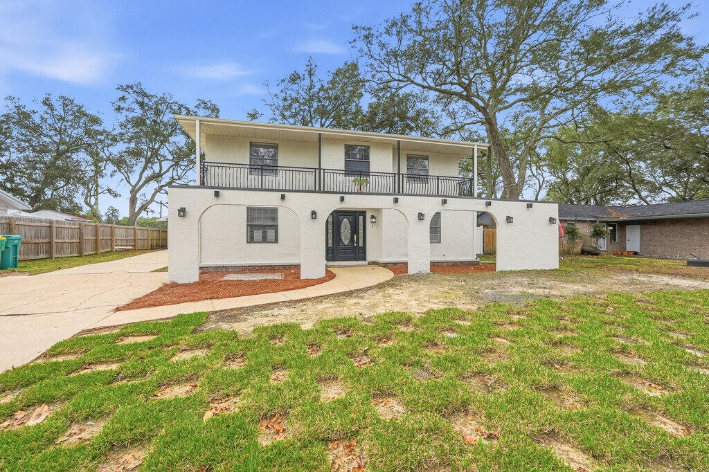 ***5 BR rentals are hard to find...especially with these beautiful updates!!*** Welcome home to this spacious five-bedroom, three-bath Mediterranean-style residence on a massive private lot in the heart of Niceville. Designed for both everyday comfort and convenient living, this two-story home has a spacious floor plan and short commutes to all that Niceville has to offer. Inside, the front entry is finished in timeless tile, while the formal dining room showcases real hardwood floors and a striking brick-enclosed wood-burning fireplace that adds warmth and character. Natural light fills the home, highlighting the open living areas and inviting sitting room. The eat-in kitchen is thoughtfully appointed with maple cabinetry, stone countertops, stylish stainless steel appliances, and ample