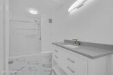 Thoughtfully updated two-story house in quiet neighborhood. This house offers two large bedrooms with a large bathroom on the 2nd floor,eat-in kitchen furnished with stainless steel and black appliances,and large front room. The house also has new flooring,newer double pane windows,central heat and air,and has a nice sized backyard. The backyard has a wooden gate that opens to off street parking as well! Don't miss this great opportunity!