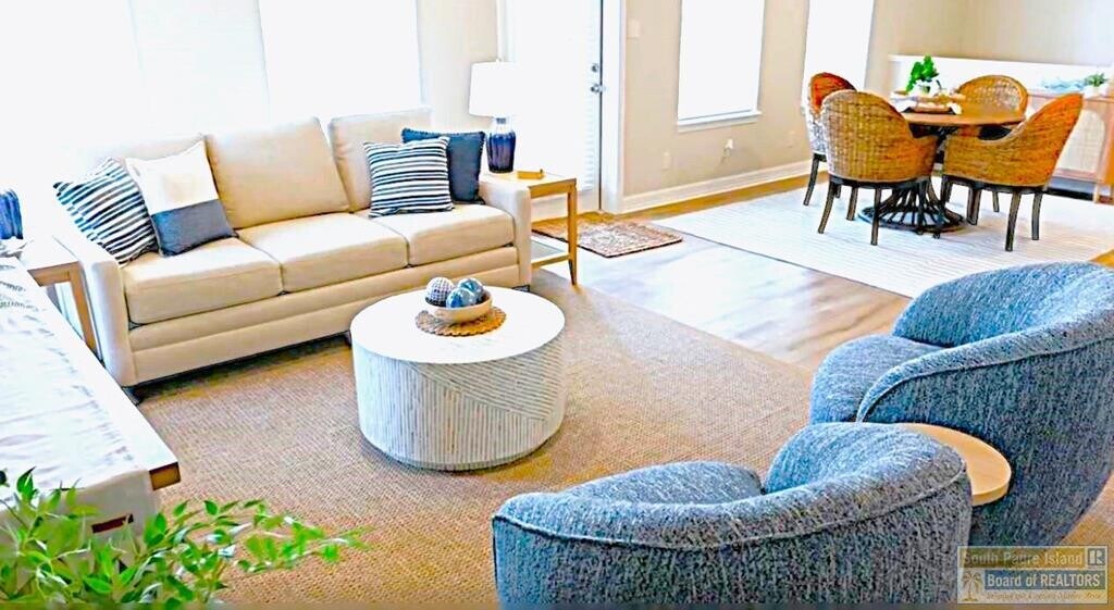**Island Luxury Living Corporate Lease- Utilities Included; The Sunset Haven Vacation Home: 4 BDRM - 3 BATH - HEATED POOL - 2 CAR GARAGE This beauty is luxury on Sunset Dr. South Padre Island, 1 block to beach access. Brand new kitchen renovation, restrooms, floors, to exterior luxury landscape new pool infinty lounge oasis, private fencing, tropical landscaping. All furnishings new interiors, exquiste taste, nautical boho-chic cozy comfort, nautral lighting, Coroporate Lease App. first, last deposit, Electric Cap $350 a month inlcluded. Lease Available 3,6,9 months.