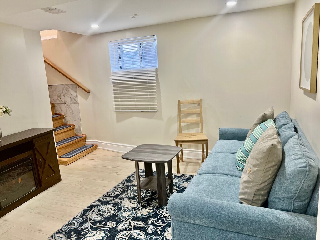 A Cozy Furnished Basement with a separate entrance and a separate Laundry W/ A Nice shared Kitchen and living room W/Separate Laundry W/ 7 Bright Windows. Private: [One Bedroom + One full Bath] Available immediately. For $850 + $100 for all utilities ( heat, water, electricity and WiFi) [Kitchen + Living Room +Laundry] Steps to the bus stop, it’s a great location, and it is very convenient for your day-to-day life! It is close to major Highway QEW, 406 Access, 7 minutes drive to Brock University, 3 minutes away from the plaza in which there is a grocery store, banks, pharmacy, and other fast-food. separate laundry, stove, fridge, Washer, Dryer, TV, and Coffee machine. -The first spacious bedroom comes complete with a luxurious Full bed, a closet, and One Full washroom. -The second bedroom comes complete with a Full bed, with three drawers & a closet, and it is occupied by one female. - Dining Area comes with a table and four chairs _living area with a beautiful sofa with a Cheerful Fireplace & TV -Kitchen and all basic essential cooking tools are included