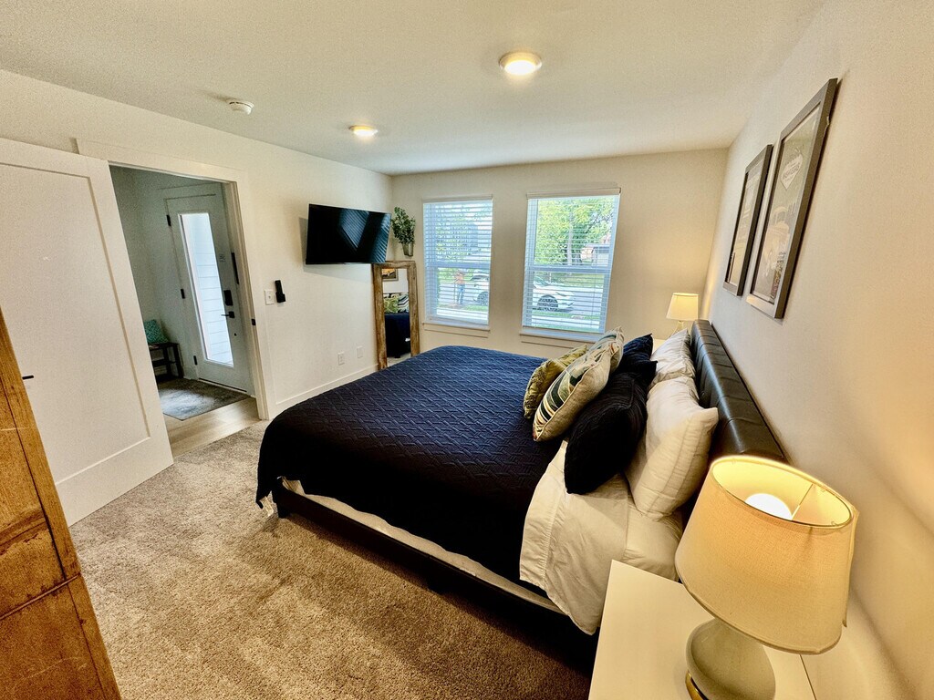 Welcome to this modern 3-story townhome in Donelson, offering 1,849 square feet of stylish living space. Conveniently located just 5 minutes from Nashville International Airport and a quick 10-minute drive to Downtown, Broadway, and Opry Mills, this home provides easy access to Nashville's top attractions. Enjoy the added convenience of free parking and a garage game room for entertainment. This newly constructed townhome features a fully equipped kitchen, a cozy living room, and a garage converted into a game room. Relax on the covered balcony or enjoy the tall ceilings that add an extra touch of elegance. The home is equipped with smart TVs, high-speed WiFi, and a washer/dryer for your convenience. This property welcomes dogs and offers a dog park in the community. Free parking is available, and the home is equipped with a washer/dryer and a fully equipped kitchen. Additional amenities include a coffee maker with coffee, creamer, and sugar, as well as snacks and waters to get you started. Situated in a safe and family-friendly neighborhood close to Downtown and Donelson, this home offers easy access to public transportation options, including a bus to Downtown and the Music City Star Commuter Rail. Explore local gems like Phat Bites and Party Fowl, or enjoy nature along the Stones River Greenway. Discover the vibrant energy of Broadway with its honky-tonks, live music, and bustling atmosphere. This property maintains a no-smoking policy inside, with a $250 cleaning fee for violations. Noise levels should be kept at a reasonable level, especially during quiet hours, and a Minut device is installed to monitor decibel levels and detect smoke. Check-in requires completion of a verification process through a trusted third-party partner. Failure to complete this process may result in cancellation of your reservation and a $100 administrative fee. High-speed WiFi is available to keep you connected, making this home remote work-friendly. A laptop computer is not included. Registration Number: [SI]