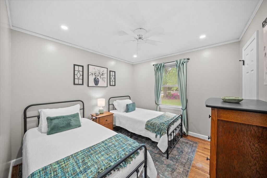 IF YOU SEE THIS HOME LISTED ON FACEBOOK MARKETPLACE, IT IS A SCAM LISTING. PLEASE REPORT THAT LISTING AS FRAUDULENT. I DO NOT ADVERTISE ON FACEBOOK MARKETPLACE. Matterport 3D Tour: This 3-bedroom, 2 bath furnished rental home in downtown Simpsonville, SC was completely renovated in 2025 with modern amenities and stylish finishes including a Level 2 EV Charger! Located in downtown Simpsonville, 120 Holland Street is quietly tucked away in an established community but boasts a 3-minute drive to Simpsonville's brand new municipal and park complex, community events, local shopping, restaurants and nightlife. Check out my other Simpsonville properties and reviews at my profile page: .Medearis Greenville County Public School Zones: Elementary: Simpsonville Middle: Bryson High: Hillcrest ***THIS PROPERTY (home and grounds) IS 100% NON-SMOKING*** Utilities included: Power* Water* Sewer* Fiber Internet/Wifi Trash Service Lawn Care *Power, water, and sewer are combined and capped at $300/mo. Tenant responsible for any overages due on receipt. This property does not have natural gas. Primary Bedroom: Queen size bedroom set locally purchased from The Front Porch in downtown Simpsonville. 100% cotton bedding, 2 nightstands with lamps, Chest of Drawers Two windows with honeycomb blinds and room darkening window treatments LED recessed lighting and ceiling fan Walk in closet has an adjustable shelving system and barn door Hardwood floors En-suite master bath: 30" vanity with one undermount sink surrounded by quartz countertops and widespread Delta Nicoli faucets. Comfort height elongated seat toilet Generous sized shower with low curb Hotel style shower curtain with washable/removable snap in liner One window with honeycomb blinds Second Bedroom: Two twin beds that can convert to a king size bed. (Bedding for king configuration available on request). 100% cotton bedding. One window with honeycomb blinds and room darkening window treatments LED recessed lighting and ceiling fan. Generous closet with an adjustable shelving system. Hardwood floors Hall Bathroom: 60" vanity with 6 drawers and 4 cabinet doors, dual undermount sinks surrounded by quartz countertops and widespread Delta Nicoli faucets. Large mirror over vanity Comfort height elongated seat toilet Tub/Shower combo with hotel style shower curtain with washable/removable snap in liner Small wall shelving, bathroom ventilation fan with nightlight, hairdryer Third Bedroom: One daybed. One desk and chair. Desk and chair can be removed to provide a true bedroom with two individual twin beds. 100% cotton bedding on memory foam mattress. One nightstand Two windows with honeycomb blinds and room darkening window treatments LED recessed lighting and ceiling fan. Closet with an adjustable shelving system. Hardwood floors Kitchen/Dining: Custom shaker style Navy cabinets with soft close hardware Quartz countertop with single bowl undermount stainless steel sink and pull-down Champagne bronze Delta faucet, modern picket tile backsplash Stainless steel French door fridge with icemaker and internal water dispenser Smooth top electric range with over-the-range Microwave with exterior venting Stainless steel dishwasher Floor to ceiling pantry Concealed roll out trash can Two windows LED recessed lighting and undercabinet lighting LVP Tile Floor Full set of high-quality stainless-steel pots, non-stick bakeware and kitchen utensils Assorted small appliances (listed below) Modern table purchased from The Front Porch in downtown Simpsonville with up to 6 chairs. Den: Brick fireplace (non-operational) with hearth 4K Wall Mounted Roku TV allows you to sign into your own streaming services Leather Couch offer a welcoming spot to watch tv on the Smart Tv which sits over a tv console purchased from The Front Porch in downtown Simpsonville. Large triple window with blinds and window treatments LED recessed lighting and ceiling fan Laundry room: Front load stacked washer and dryer Exterior Spaces: Rocking Chair front (porch furniture TBD) Large fully fenced back yard Garage: 2 car garage with EV charger--currently only one garage door is operational at this time Security Cameras: Doorbell Camera Spotlight cameras Access to cameras can be shared with the tenant upon request. Small kitchen appliances: Ninja SP201 Digital Air Fry Pro Countertop 8-in-1 Oven XL Capacity, Flip Up: Air Fry, Air Roast, Bake, Broil, Toast, Bagel, Reheat, Dehydrate Ninja Blender Kitchenaid Hand Mixer Hamilton Beach Flex Brew Coffee Maker (K cups or traditional carafe) Electric Kettle Crockpot Linens: Sheets: Each bed has white linens that are 100% cotton at and least 400TC Bedding: Quilt and sham, blanket are 100% cotton. Towels: White 100% cotton. Makeup removal towels are provided to keep the white towels white! Beds: All mattresses, box springs and pillows are fully encased. All mattresses also have waterproof mattress pads. Utility Items Provided: Shark vacuum Microfiber mop with washable cover Microfiber dusters Regular broom and dustpan Mini broom and dustpan Step stool on dedicated hook Basic hand tools Flashlight Laundry Items provided: Dryer balls Lint Bin Clothes steamer Clothes shaver Swing out hooks Ironing board Iron Extras: Starter set of paper products (Toilet paper, paper towels, tissues) Starter toiletries Starter set of washer pods and dryer sheets Starter set of dishwasher pods Starter set of coffee k cups, ground coffee and filters Starter set of cleaning products Games/Puzzles in TV Cabinet Basic Office Supplies App for Camera Access Keyless Entry Monthly HVAC filter changes Online rent payment Online maintenance portal Flexible lease terms Opportunity to add monthly or bi-weekly cleanings by a professional cleaning company at tenants expense Quick response to maintenance requests Animals: All pets are considered on a case-by-case basis and some breeds may not be allowed due to insurance policy requirements No more than two animals per lease All animals must be up to date on v