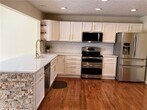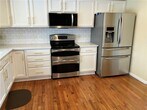 Home lovingly remodeled,fantastic oak floors in every room. Updated kitchen with quartz counters and all new stainless appliances. Spectacular view of woods & pond from bright morning room. Huge family room with natural stone/brick wall and large electric fireplace. Convenient half bath on first floor. 3 bedrooms and 2 full baths on 2nd floor. Main bedroom has walk-in closet,main bath has jacuzzi & separate walk-in tiled shower. New washer & dryer included. 10 x 10 shed.