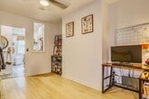This sun-drenched 1-bedroom apartment offers the perfect blend of comfort and style. Enjoy a newly renovated kitchen featuring subway tile backsplash, quartz countertops, stainless steel appliances, and a dishwasher. The bright and airy layout includes an open living and dining area, ideal for both relaxing and entertaining. The renovated full bathroom is modern and sleek, while the bedroom offers ample closet space and plenty of natural light. For added convenience, there's an in-unit washer and dryer. Located just steps from shops, restaurants, parks, mass transit, and vibrant nightlife, this is the lifestyle upgrade you’ve been waiting for!
