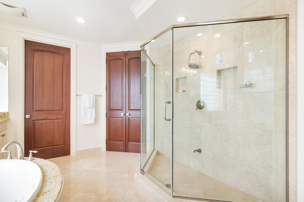 Stunning ocean views from every room in very private and gracious furnished condo with wrap around terraces. Only one residence per floor. Three bedrooms, 4.5 bathrooms, plus office and also a den. Enormous gourmet kitchen with breakfast room and walk-in pantry, separate dining room, large laundry room. Spectacular closet space. All impact glass and high ceilings. 2 garage parking spaces. Gated entrance and pool in community.