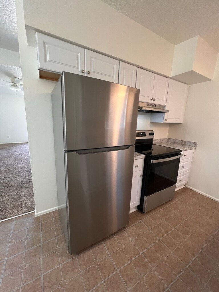 Livingroom: carpet flooring, ceiling fan & wall heater Bedroom: carpet flooring Kitchen; vinyl, flooring, tiled countertops, single sink, and refrigerator, electric stove Bathroom; vinyl flooring, tiled countertops, combo tub/ shower, Washer hook-up inside unit, Electric dryer hookup outside in private storage closet. Carport parking Please visit our website at to view our rental guidelines and to complete an application. Select Property Management DRE# 01007365