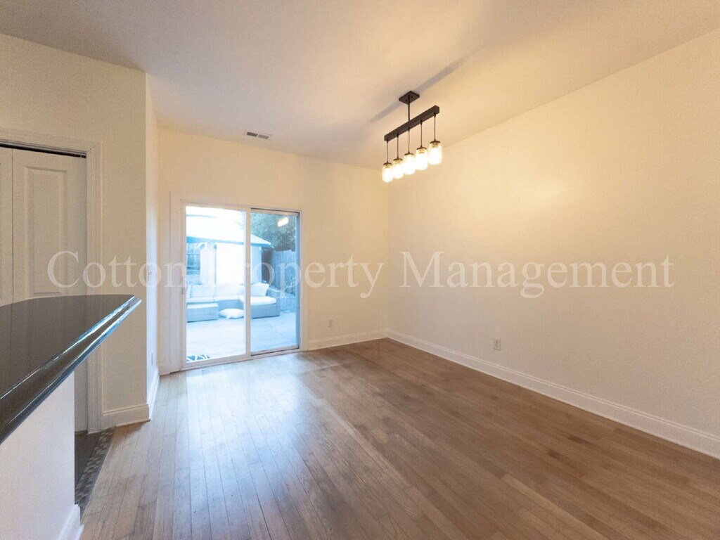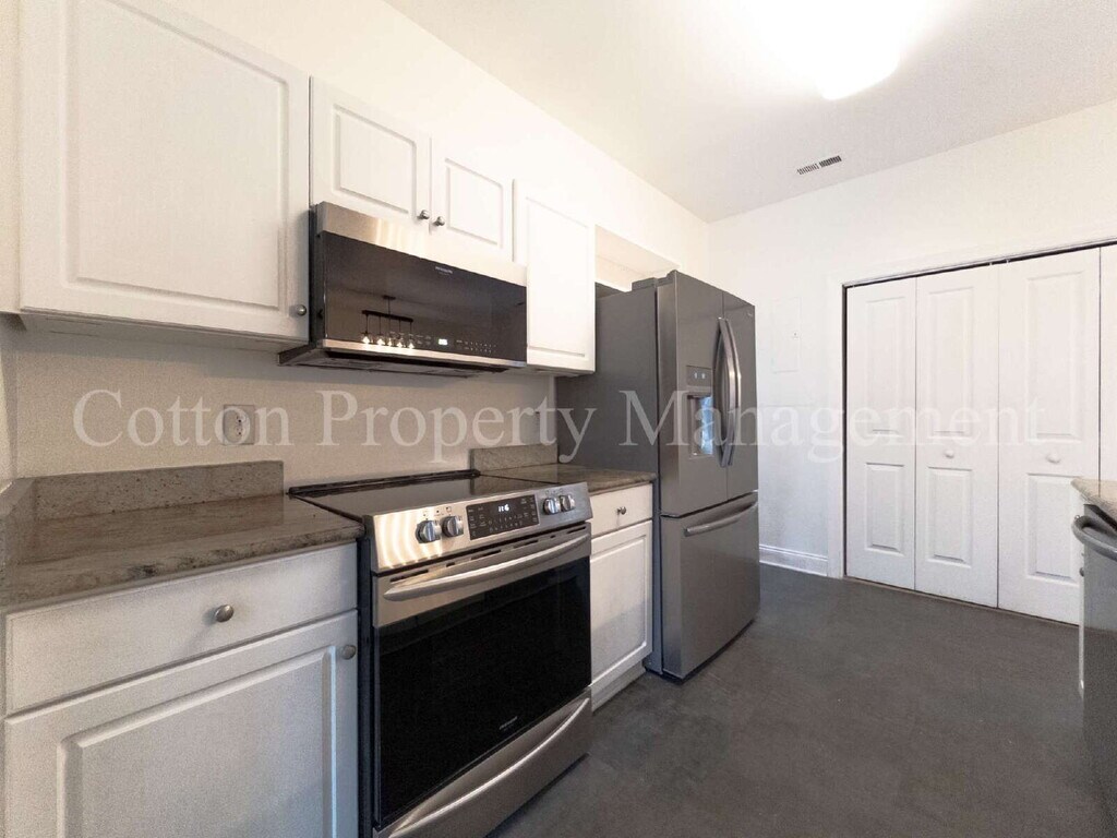 This charming home is located in the historic district of downtown Wilmington, full of rich history and culture! Enjoy the shops, dining, breweries, the acclaimed riverwalk and entertainment such as that found featured at the Wilson center! This charming two-story home is adorned with engineered hardwood flooring in the living and dining areas and crown molding throughout the living room. Kitchen boasts granite countertops, smooth top, downdraft oven, stainless french door fridge and over the range microwave. Half bathroom downstairs with tile flooring and decorative wainscoting. Upstairs features three bedrooms, with a primary bedroom and bathroom, and two additional bedrooms with hall bathroom. Fenced in backyard provides more privacy than is often found downtown with a large patio for entertaining. Washer and dryer are provided and are included in the rent! *Two Pet limit with applicable fees and pet rent Professionally Managed by Cotton Property ManagementSmooth Top Range