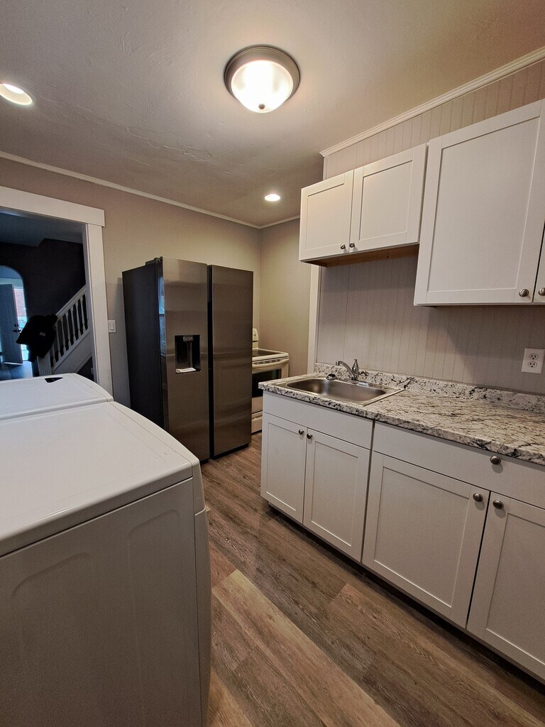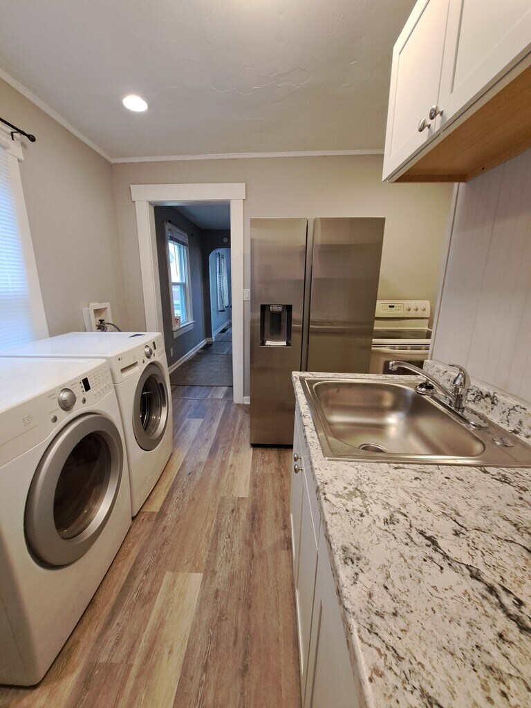 Now available for rent is this beautifully refreshed 2-bedroom, 1-bathroom duplex unit offering comfort, style, and modern updates throughout. The home features brand-new luxury vinyl plank flooring on the main level, complemented by a fully updated kitchen equipped with a new refrigerator, stove, and in-unit washer and dryer for your convenience. Fresh paint brightens every room, while the upstairs bedrooms boast brand-new carpeting for added comfort. New light fixtures throughout enhance the modern feel and create a warm, inviting atmosphere. Tenants are responsible for all utilities. Applicants must successfully pass a background and credit check and demonstrate a minimum income of 2.5 times the monthly rent. Please note that Zillow applications are not accepted. Professionally managed by Heartland Realty & Property Management. Contact us today to schedule a showing or to receive an application!